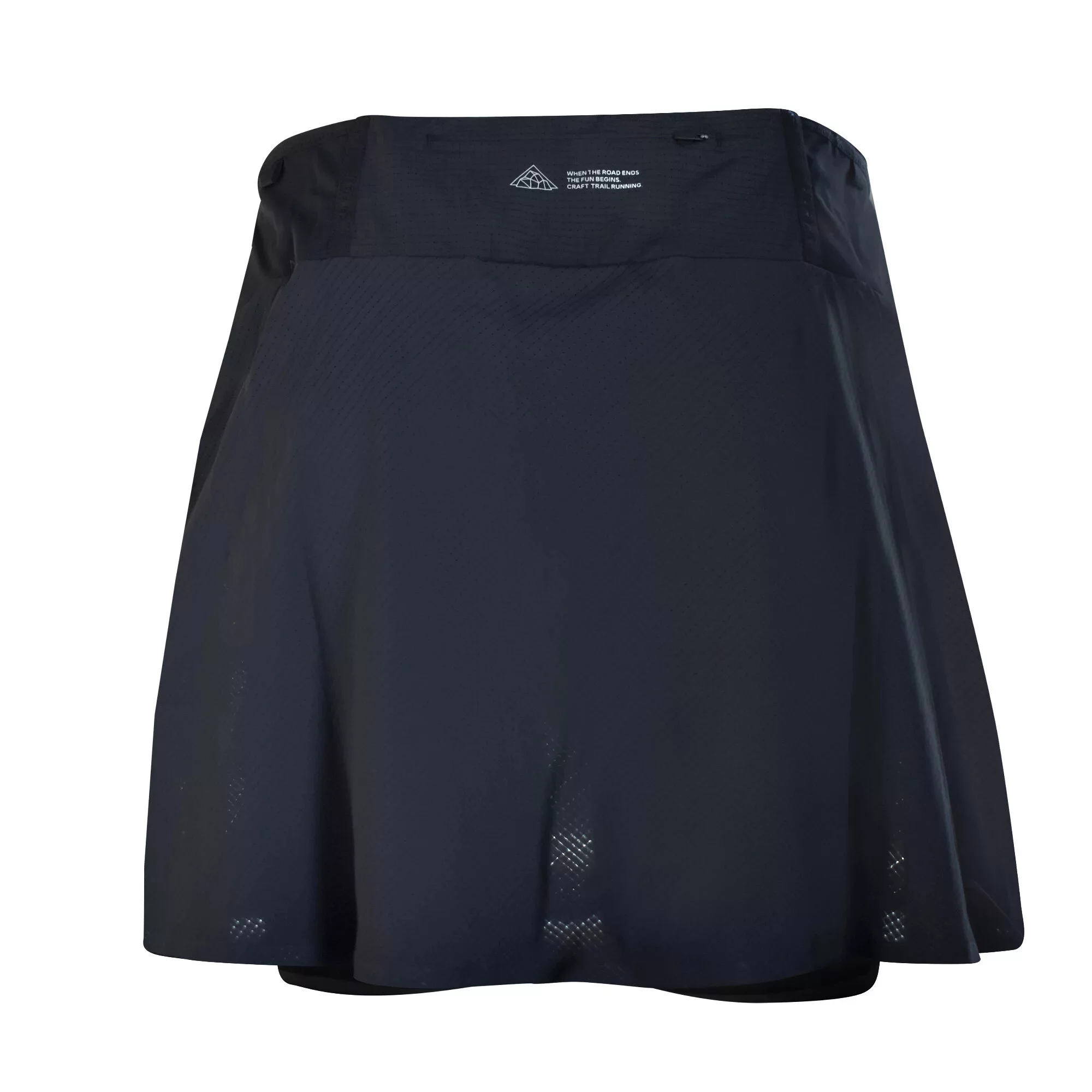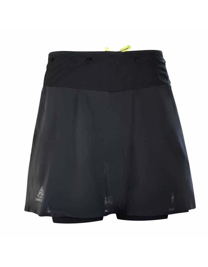 Dámská běžecká sukně CRAFT PRO Trail je navržena pro intenzivní běh v terénu. Lehký a strečový materiál sukně doplňují vnitřní elastické šortky, které zefektivňují práci svalů při běhu. Nespornou výhodou sukně je velké množství kapes. Po celém obvodu pasu jsou meshové kapsy, pouze v bederní části větší kapsa na zip. Mobilní telefon je možné bezpečně uložit do kapsy na pravém stehně vnitřních šortek.