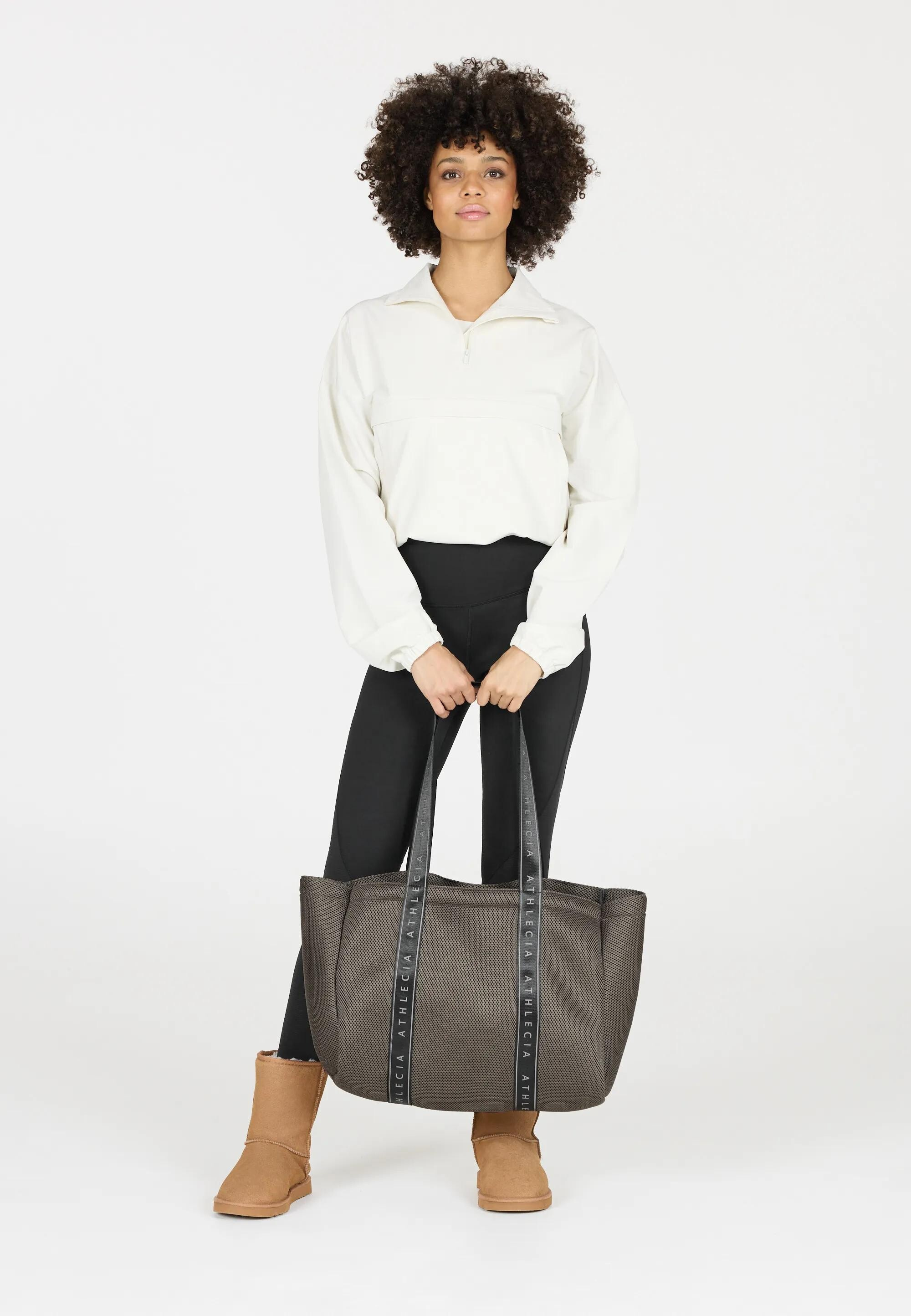 Stylová sportovní taška značky Athlecia je ideálním doplňkem pro každou aktivní ženu. Je vyrobena z pevného perforovaného materiálu, který zajišťuje odolnost a zároveň moderní vzhled. Dlouhá tkaná ucha s nápisem „ATHLECIA“ umožňují pohodlné nošení jak v ruce, tak přes rameno. Vnitřní prostor nabízí dostatek místa na oblečení, obuv i další nezbytnosti, které potřebujete mít po ruce na tréninku nebo při cestování. Díky minimalistickému provedení a univerzální barvě se snadno kombinuje s jakýmkoli outfitem. Ideální na sportovní aktivity, do fitka, na jógu, ale i jako praktická a elegantní taška do města nebo na víkendové výlety.