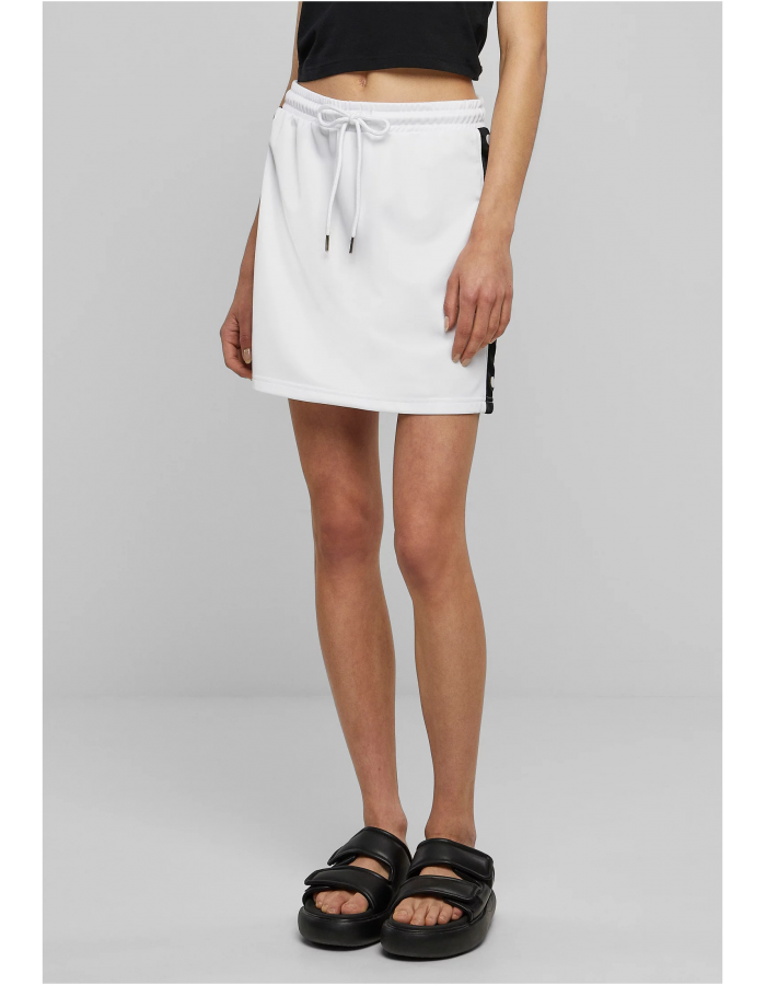 Chcete sportovní vzhled, aniž byste zanedbávali svou ženskou stránku? Pak je tato tepláková sukně vaším ideálním společníkem. Nabízí vzhled sportovních kraťasů - pouze jako sukně! Třpytivá látka a dva boční pruhy s falešnými patentními knoflíky v matném kovovém vzhledu mu dodávají jeho charakter. Díky elastickému pasu se stahovací šňůrkou perfektně sedí na bocích. Nechte své pocity a nápady volně plynout!