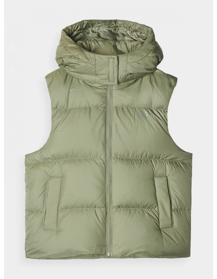 Dámská krátká péřová vesta se zvýšeným objemem a hmotností výplně je ideální volbou pro chladné a zimní dny při každodenních nebo sportovních aktivitách.