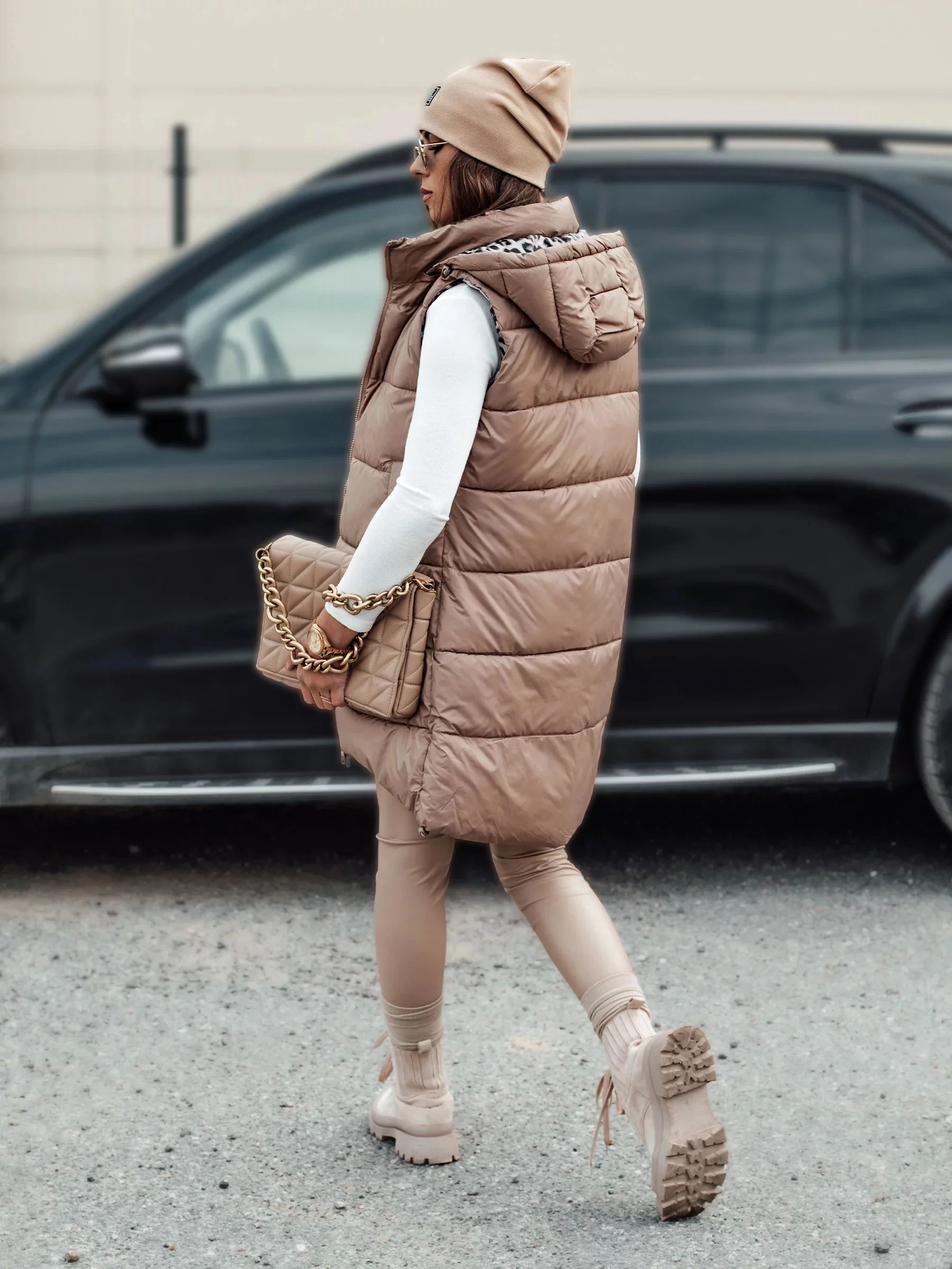 Tato oboustranná prošívaná vesta s odepínací kapucí spojuje funkčnost s módním designem.