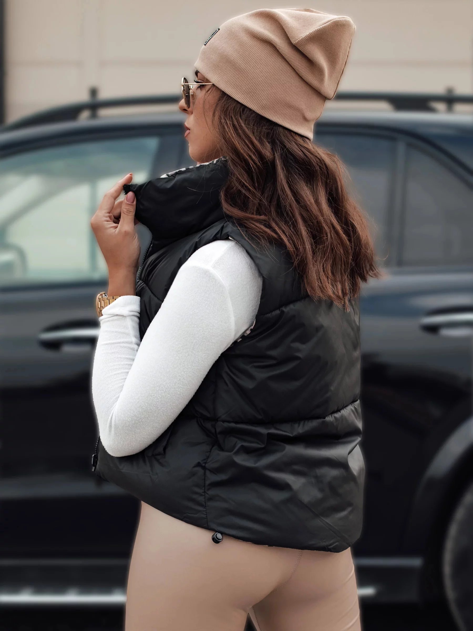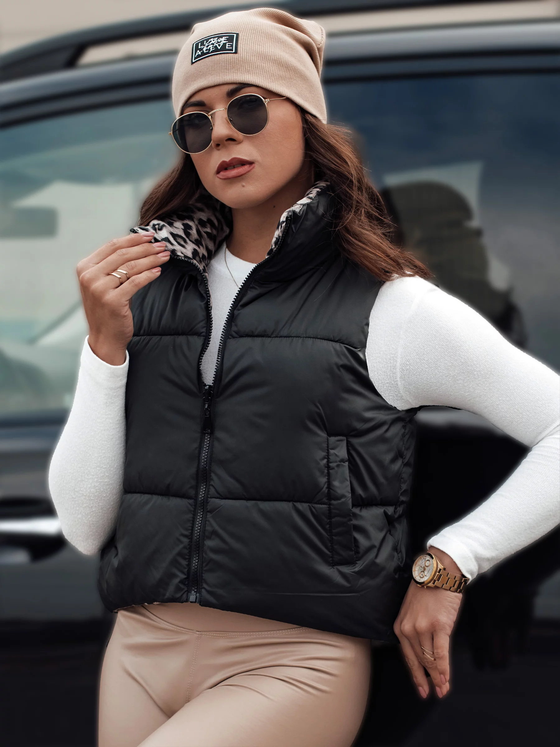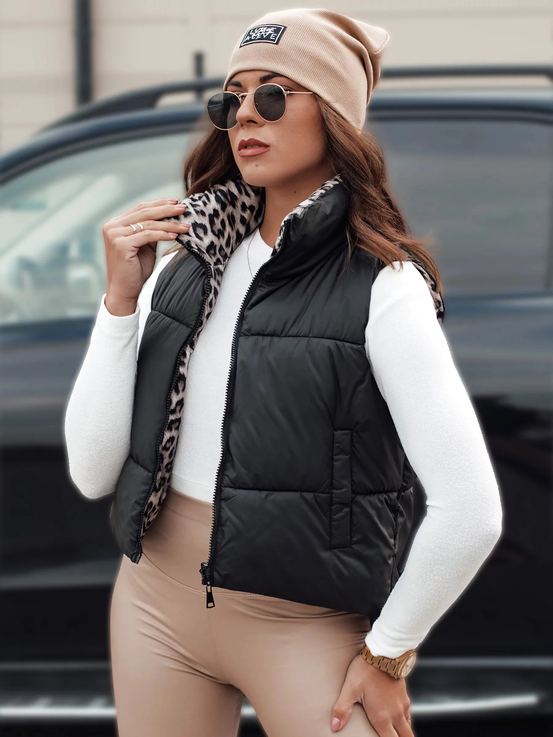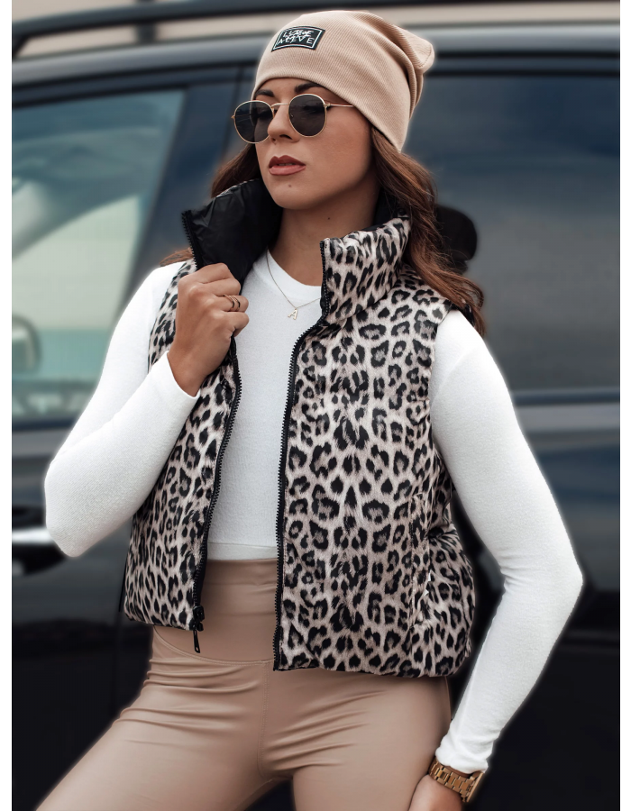 Moderní oboustranná vesta s jemným vzorem pantera je ideální volbou pro chladnější dny.