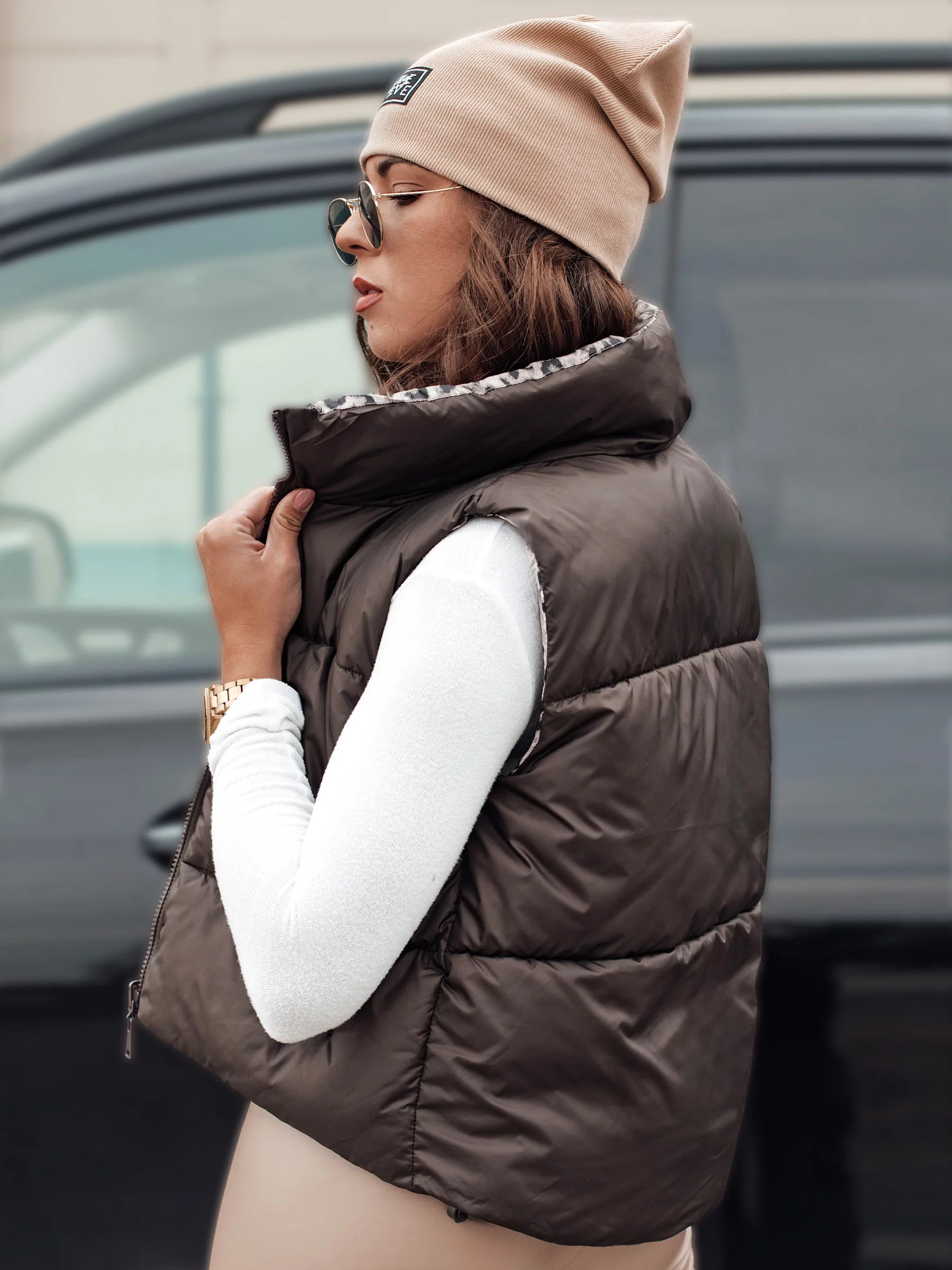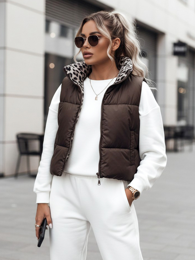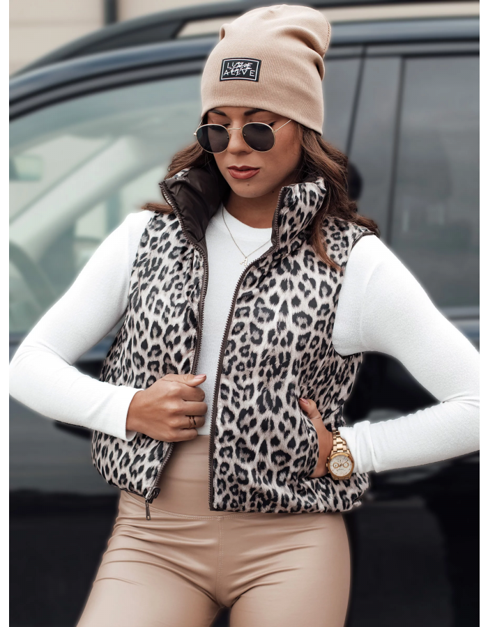Moderní oboustranná vesta s jemným vzorem pantera je ideální volbou pro chladnější dny.
