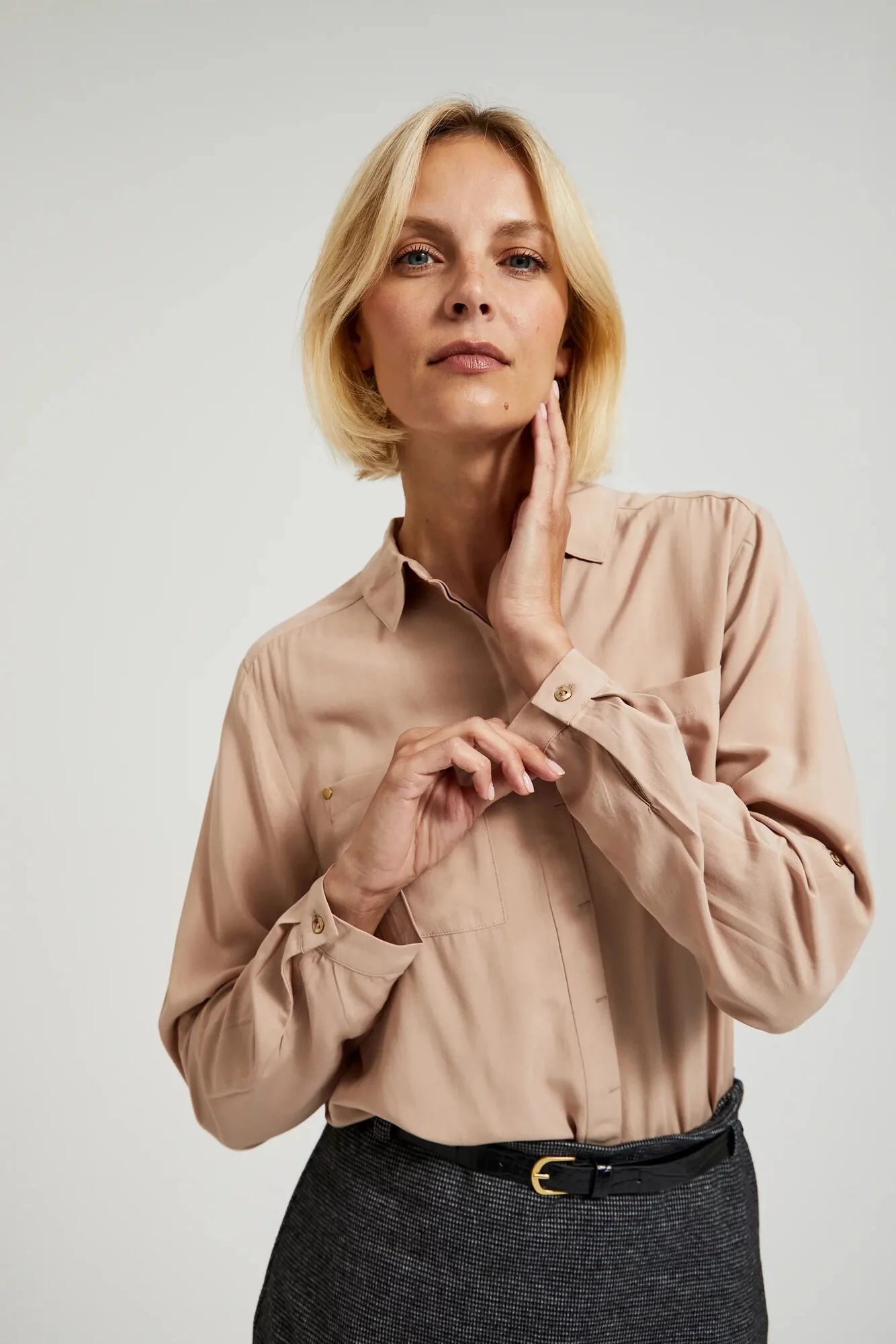 Dámská viskózová halenka s kapsami MOODO - béžová Velikost: XS