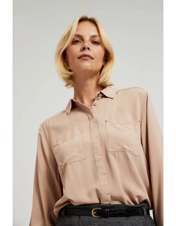 Dámská viskózová halenka s kapsami MOODO - béžová Velikost: XXL