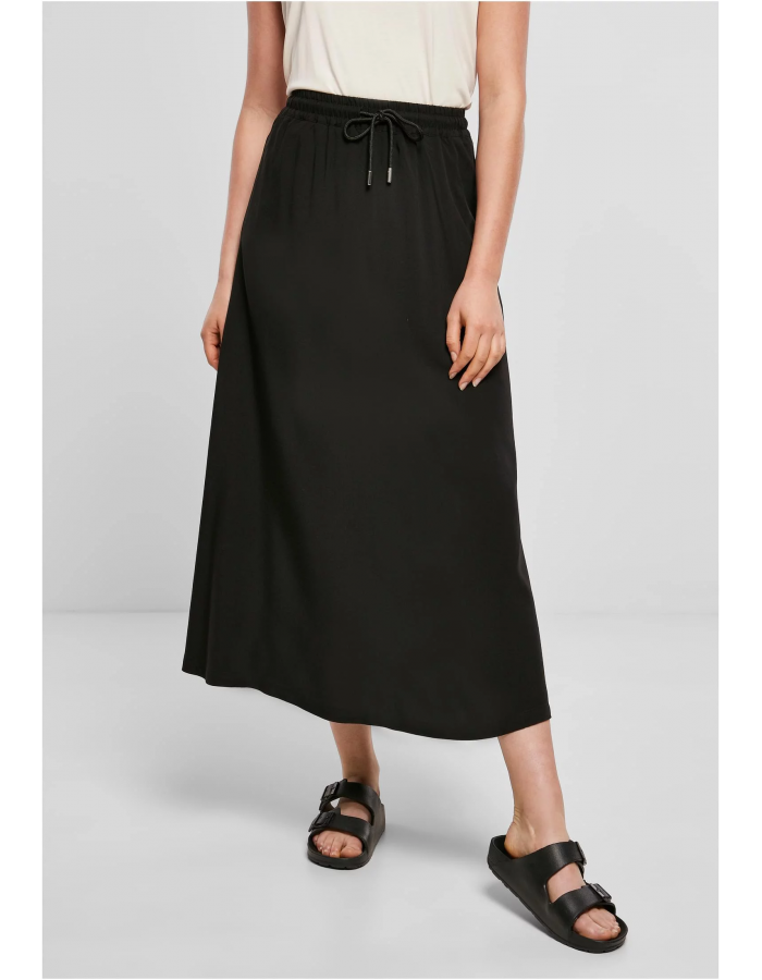 Dámská sukně v květinovém stylu jemně padá po nohách a dosahuje až k lýtkům. Kromě volného střihu nabízí elastický pas s integrovanou stahovací šňůrkou bezpečné a pohodlné nošení. Praktickým detailem jsou boční kapsy. Moderní sukně je vyrobena z hladké, tkané viskózy.