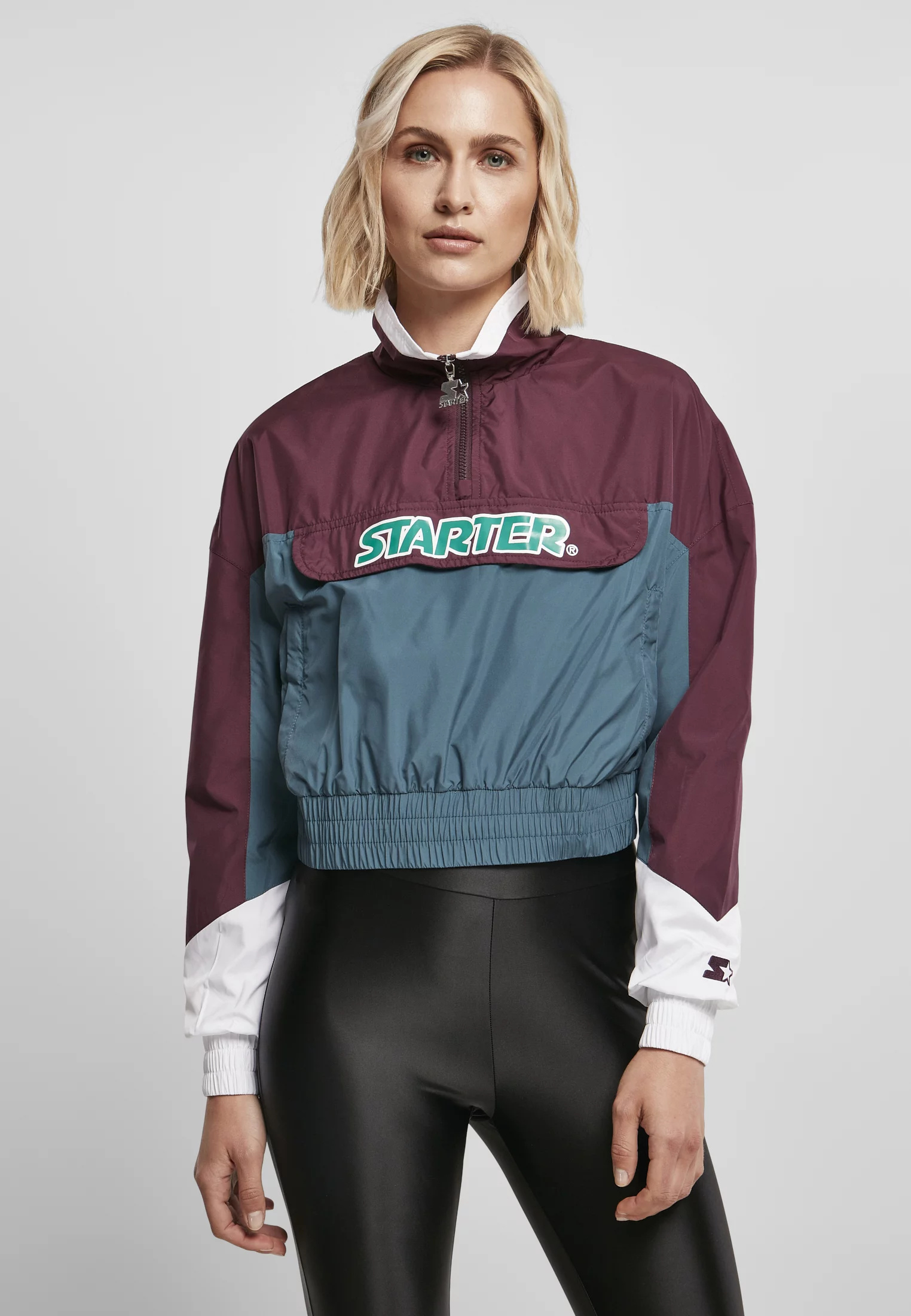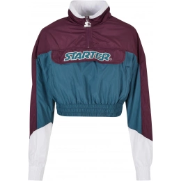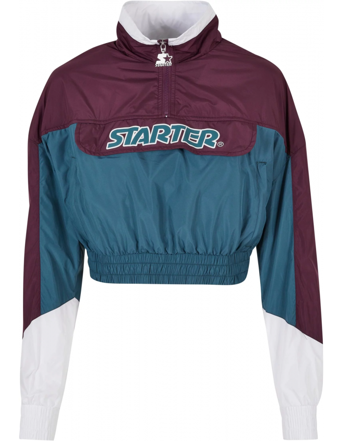 Tato dámská větrovka v tříbarevném barevném provedení je spolehlivým společníkem do chladných a větrných dnů a nabízí chytrý krátký střih. Stylový lem s potiskem Starter na hrudi a vyšívaným logem na rukávu. Dále dámská bunda nabízí krátký stojáček na zip a ramínko na zip Starter. Manžety na rukávech a lemu jsou široké a elastické. Dvě praktické boční kapsy na zip ponechávají prostor pro ruce a nezbytnosti. Díky materiálu z terylenu a polyesteru je bunda pohodlná na nošení, použité barvy dodávají bundě strukturu.