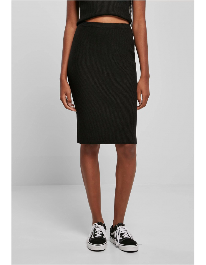 Všestranná a snadno kombinovatelná sukně s přímočarým designem. Uspokojí i decentní midi délku a měkkou a elastickou žebrovanou tkaninu (akryl, viskóza a nylon). Střih je přirozeného slim fit střihu a dodatečné pohodlí při nošení zajišťuje jemný elastický pas.