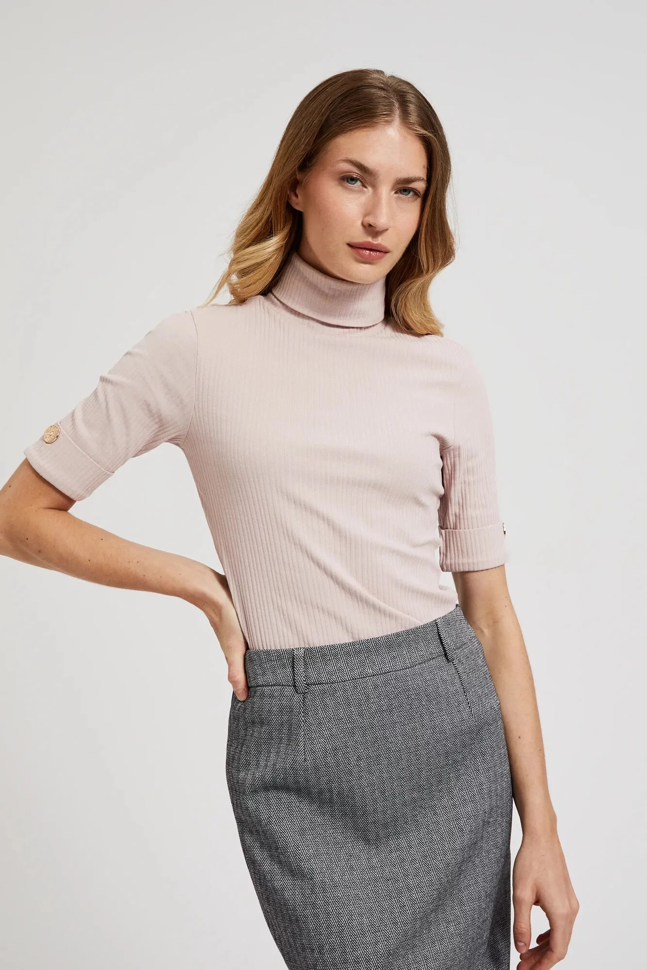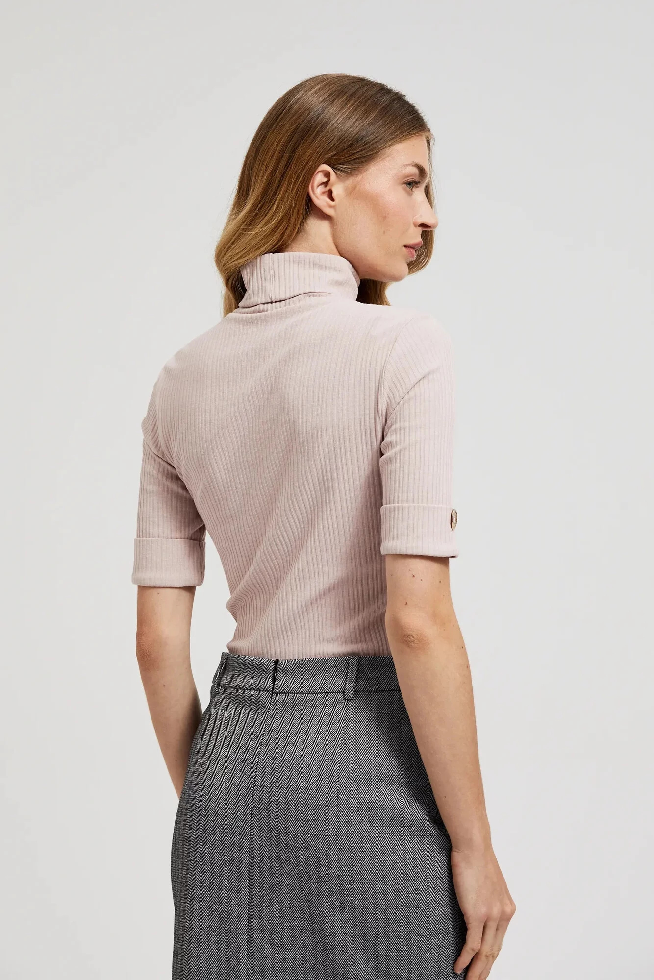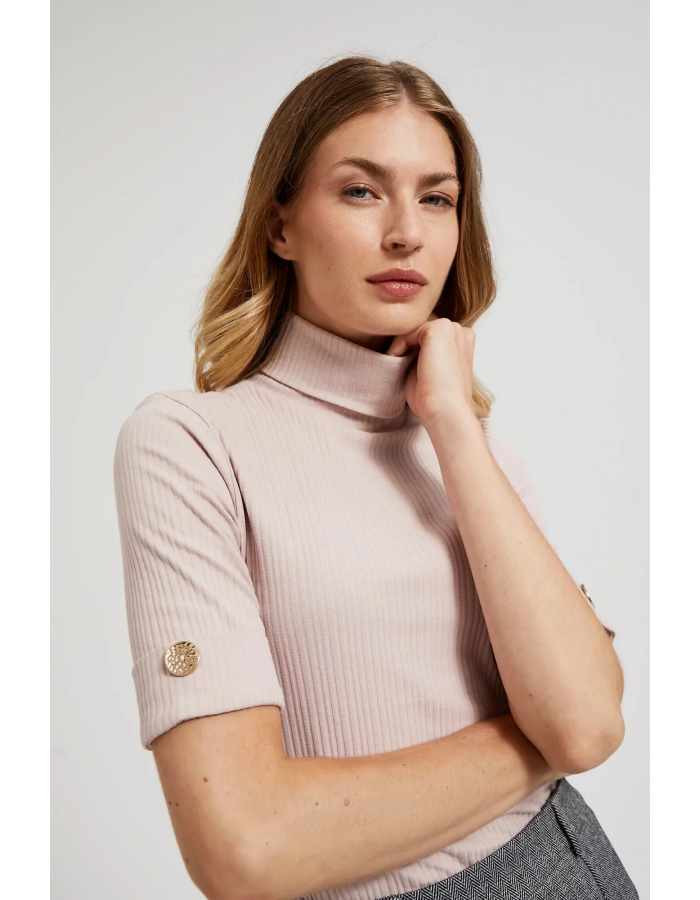 Dámská žebrovaná roláková halenka MOODO - růžová Velikost: XS