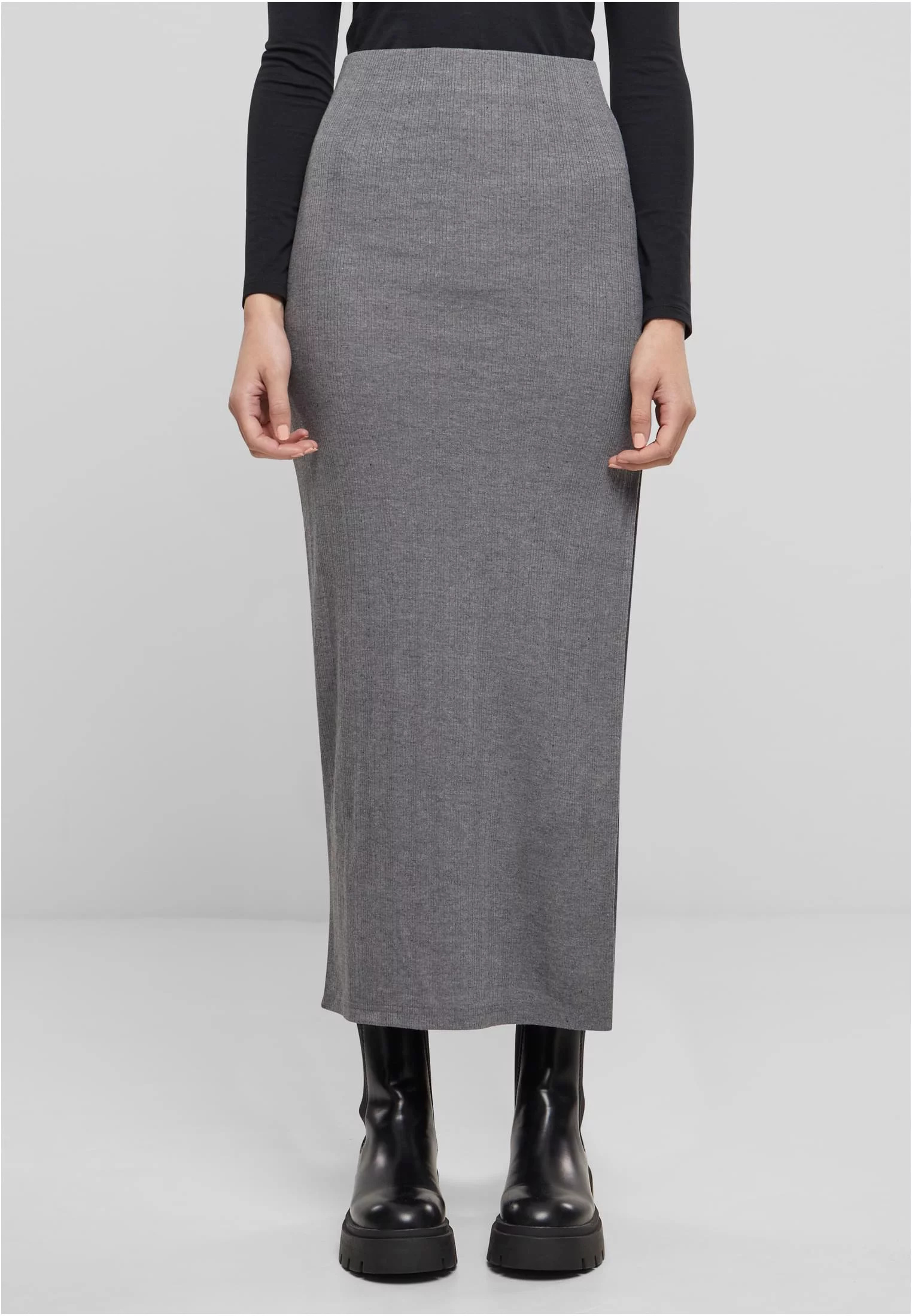 Sukně sahá do poloviny lýtek a má vysoký pas, což vytváří elegantní a prodlouženou siluetu. Je vyrobena z pružného materiálu, který pohodlně obepíná postavu. Díky svému jednoduchému designu a neutrální černé barvě je tato sukně velmi univerzální a lze ji snadno kombinovat s různými topy a obuví, jak pro formální, tak pro neformální příležitosti. Na obrázku je sukně kombinována s černými koženými botami na platformě, což dodává outfitu moderní a stylový vzhled.