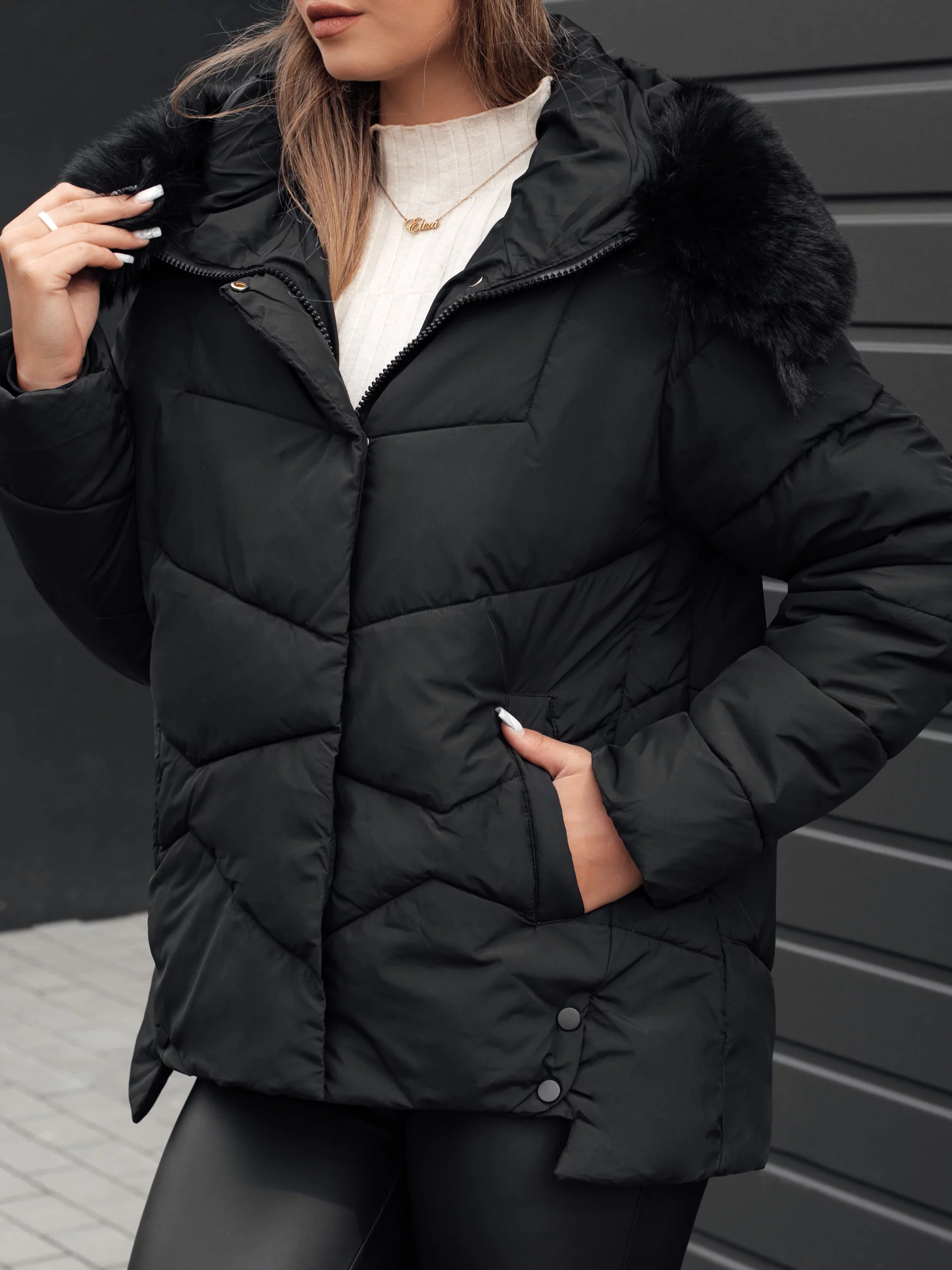 Teplá a stylová péřová bunda ideální na zimní dny. Komfortní střih s pohodlnou kapucí, která poskytuje ochranu před větrem a chladem. Má praktické zapínání na zip a druky a kapsy, které pojmou nejdůležitější drobnosti. Dokonalá pro každodenní stylizace i na výjimečné příležitosti.