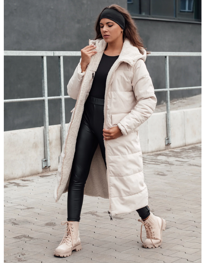 Dámská zimní bunda GLAMPUFF oboustranná prošívaná s kapucí béžová Dstreet TY4605 Velikost: M