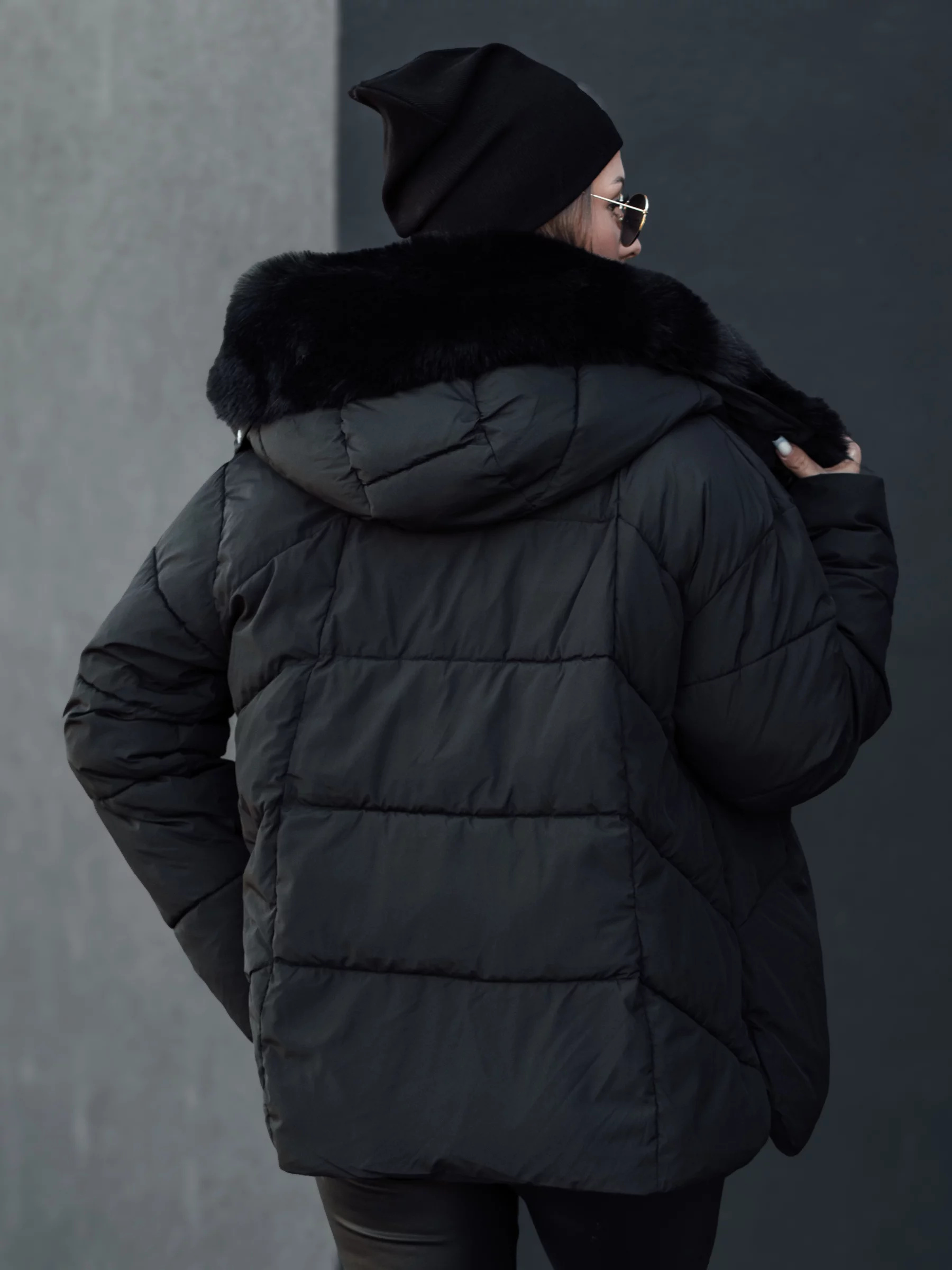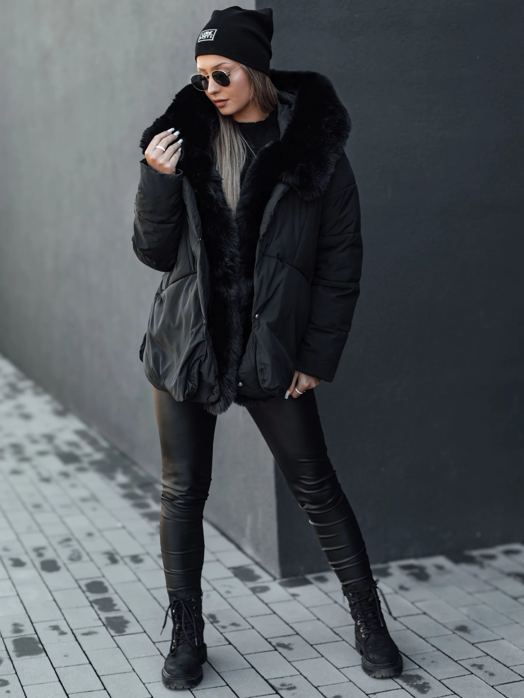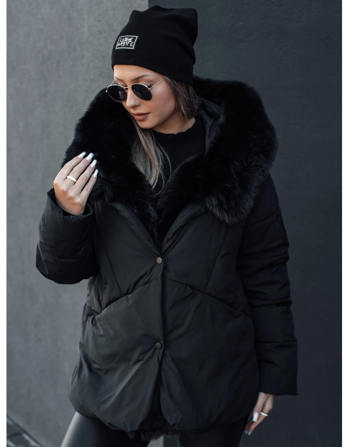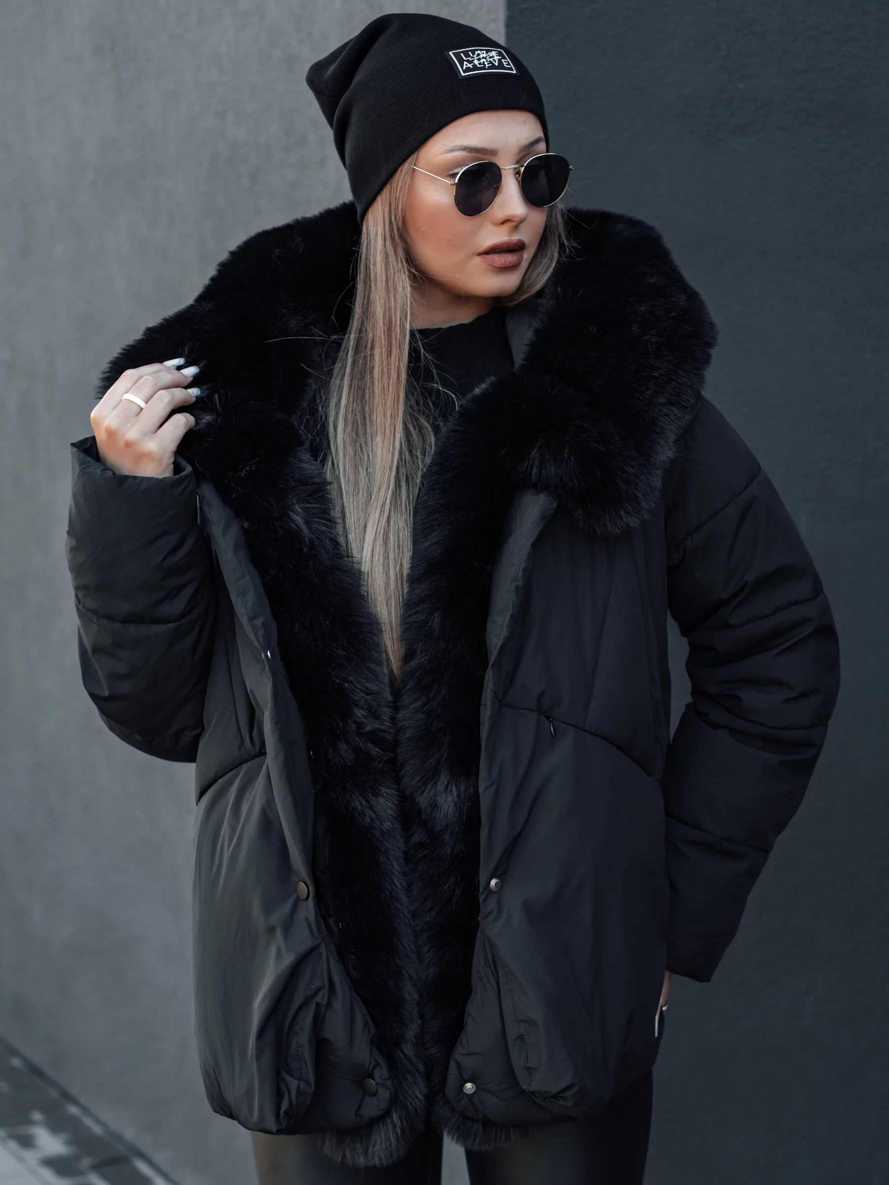 Dámská zimní bunda LUNAVI prošívaná s kožešinou černá Dstreet TY4667 Velikost: L