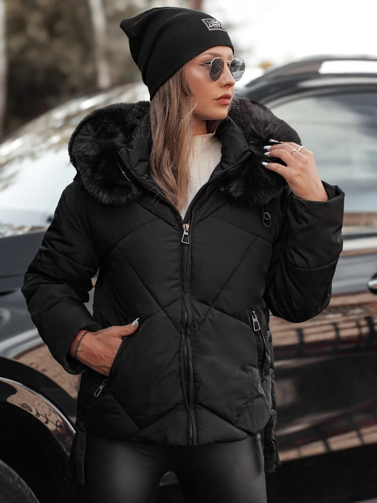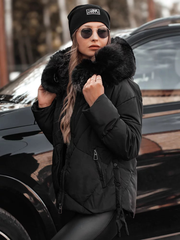 Dámská zimní bunda MODIVA prošívaná s kapucí černá Dstreet TY4726 S