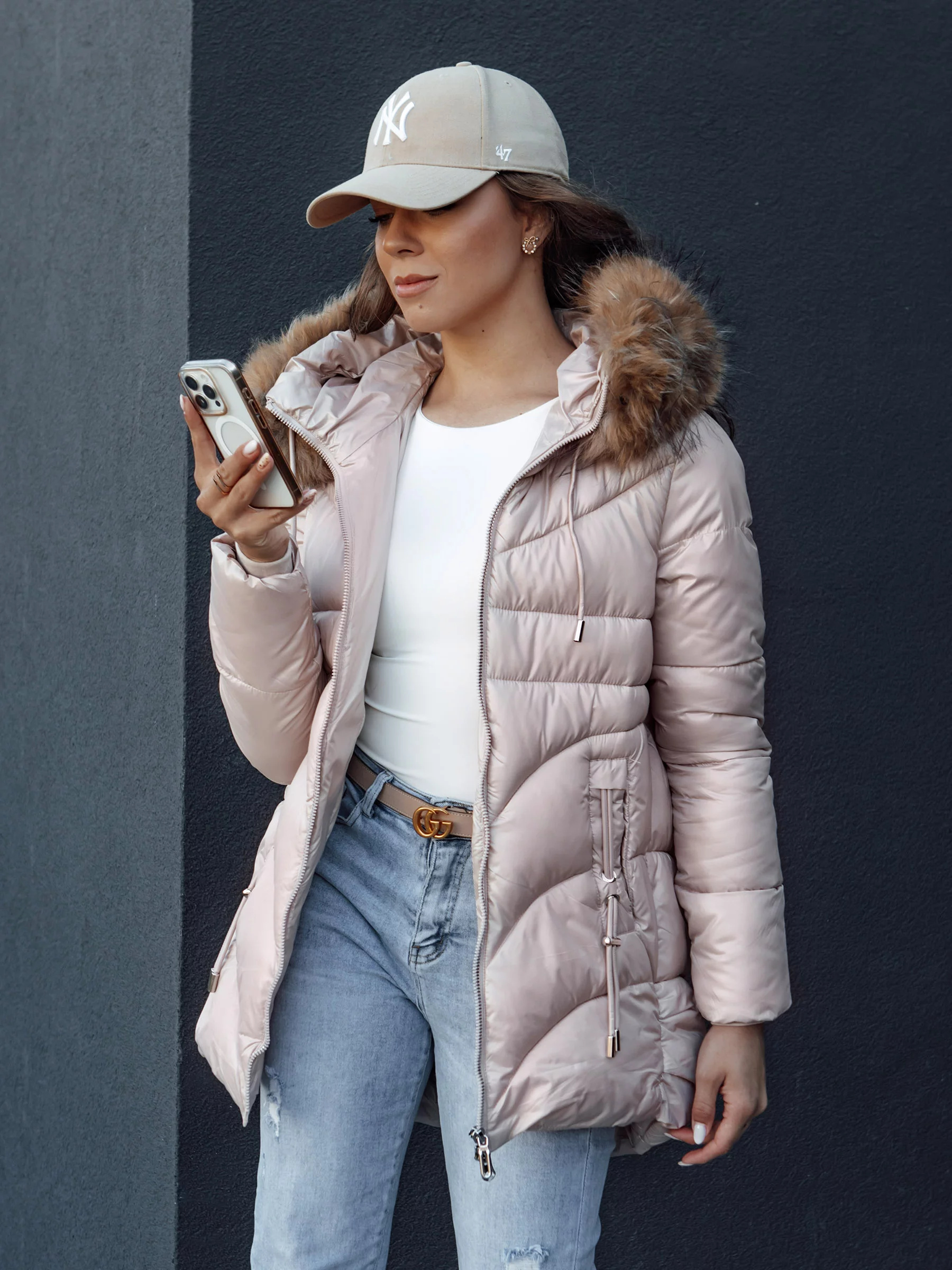 Naše bunda je kombinací módy a praktičnosti. Díky zapínání na zip je její oblékání a svlékání rychlé a snadné. Odepínací kapuce s kožešinou dodává eleganci a zároveň umožňuje přizpůsobení bundy počasí. Dvě vnější kapsy jsou ideální pro uložení nejpotřebnějších věcí a stahovací šňůrky na spodním lemu a rukávech účinně chrání před větrem, zajišťují teplo. To je ideální bunda na každodenní výlety, které vyžadují stylový vzhled a spolehlivou ochranu před chladem.