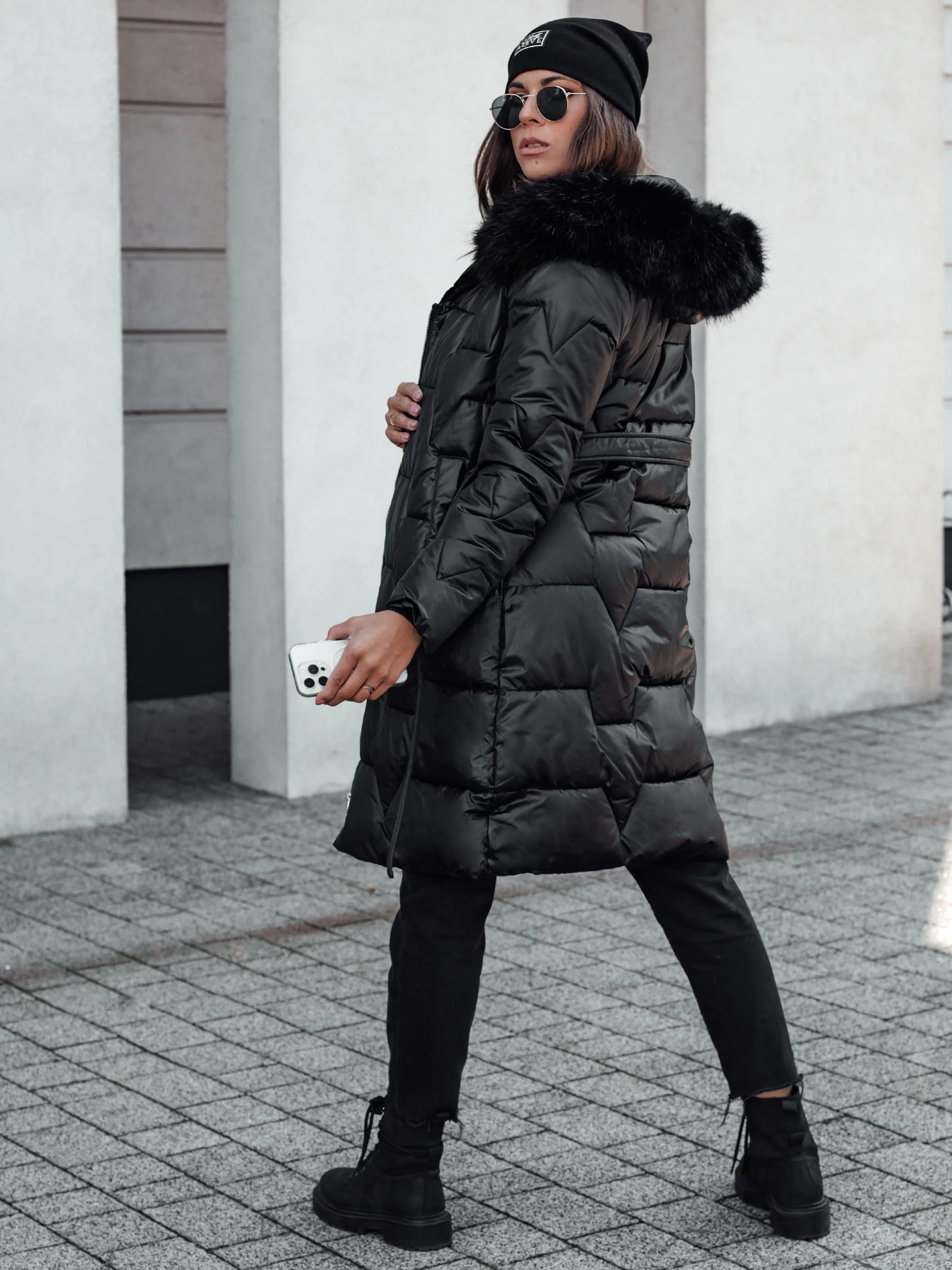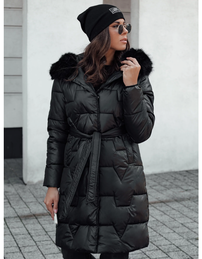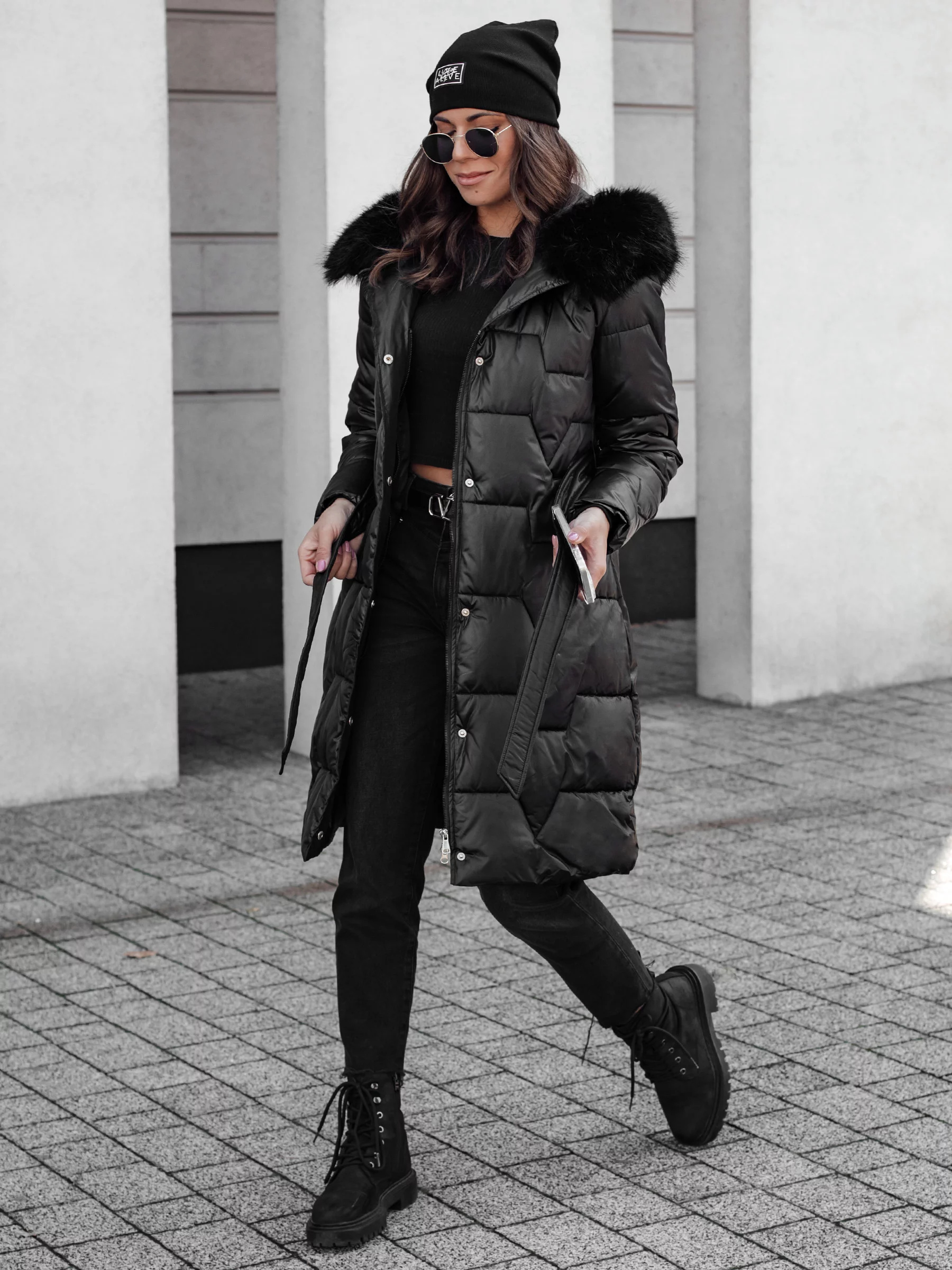 Dámská zimní bunda STYLOWQ dlouhá prošívaná s kožešinou černá Dstreet TY4631 Velikost: L