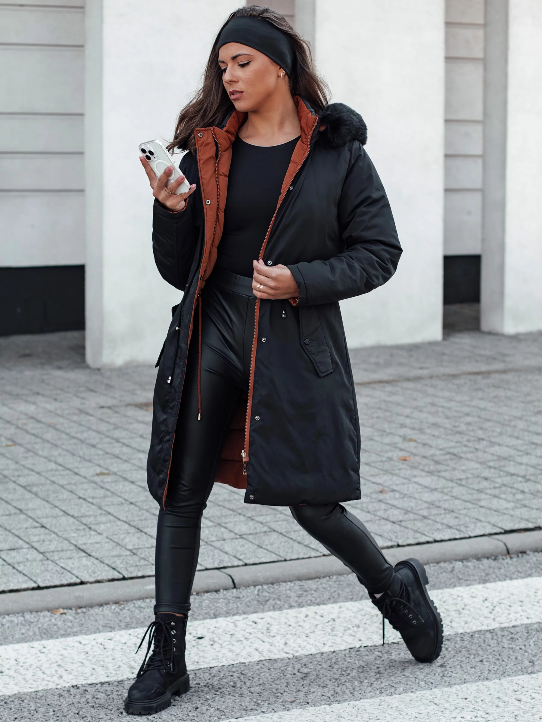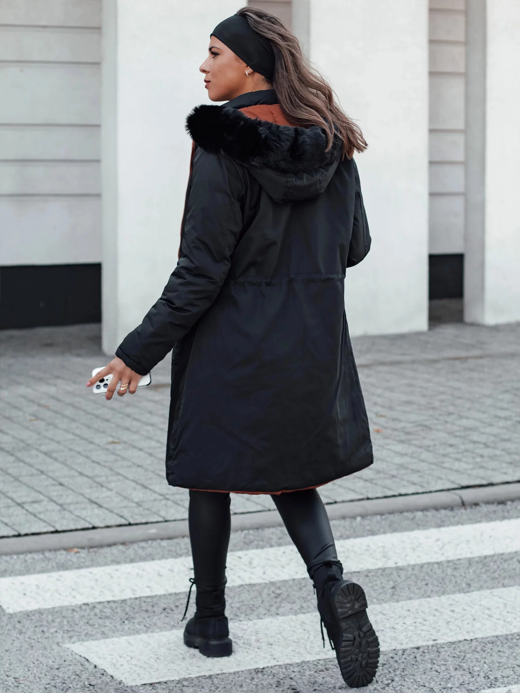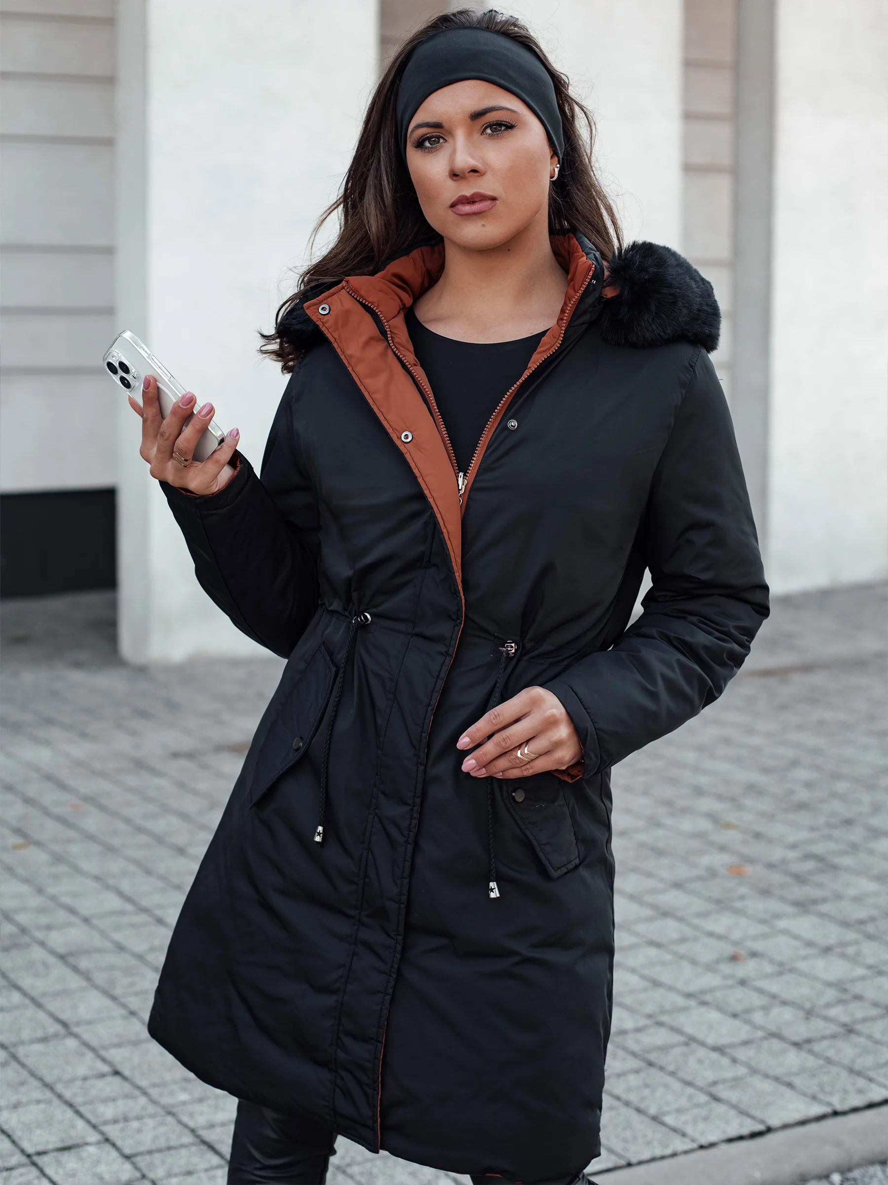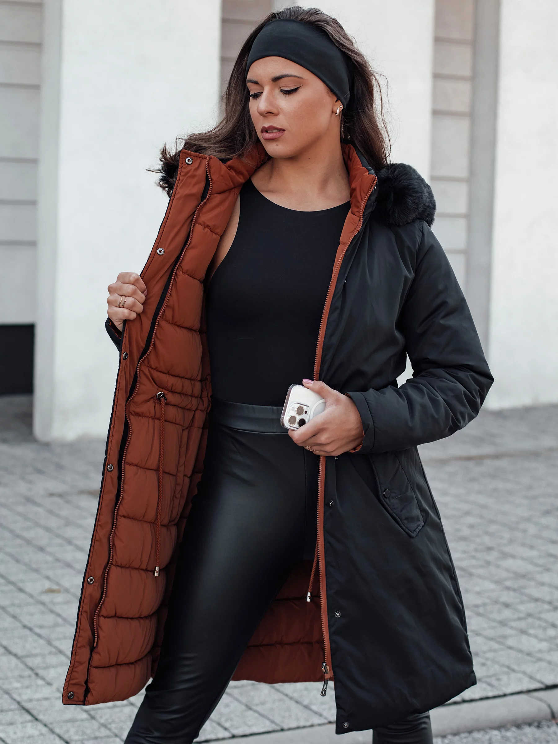 Dámská zimní bunda TRENDNEL dlouhá prošívaná s kožešinou černá Dstreet TY4587