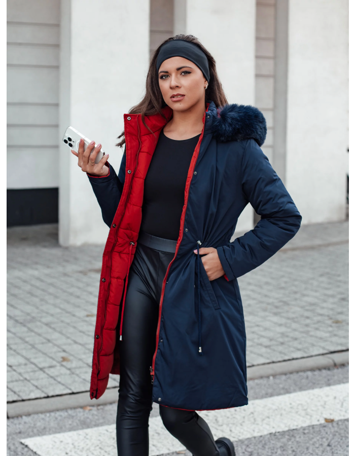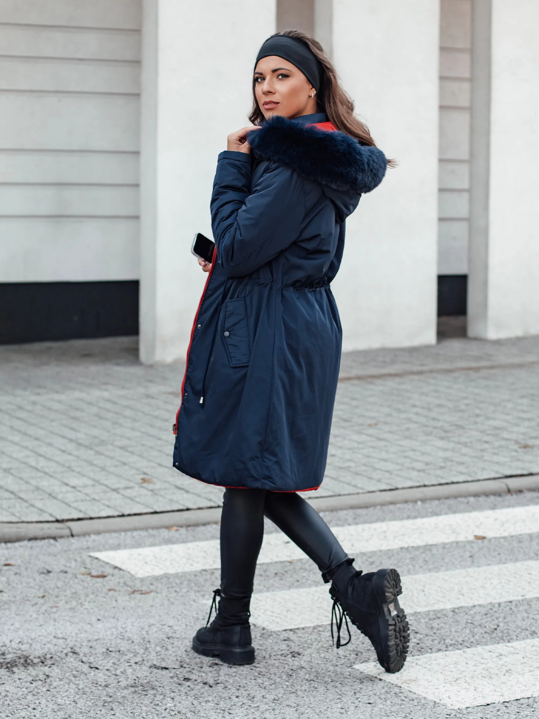 Dámská zimní bunda TRENDNEL dlouhá prošívaná s kožešinou modrá Dstreet TY4590 XL