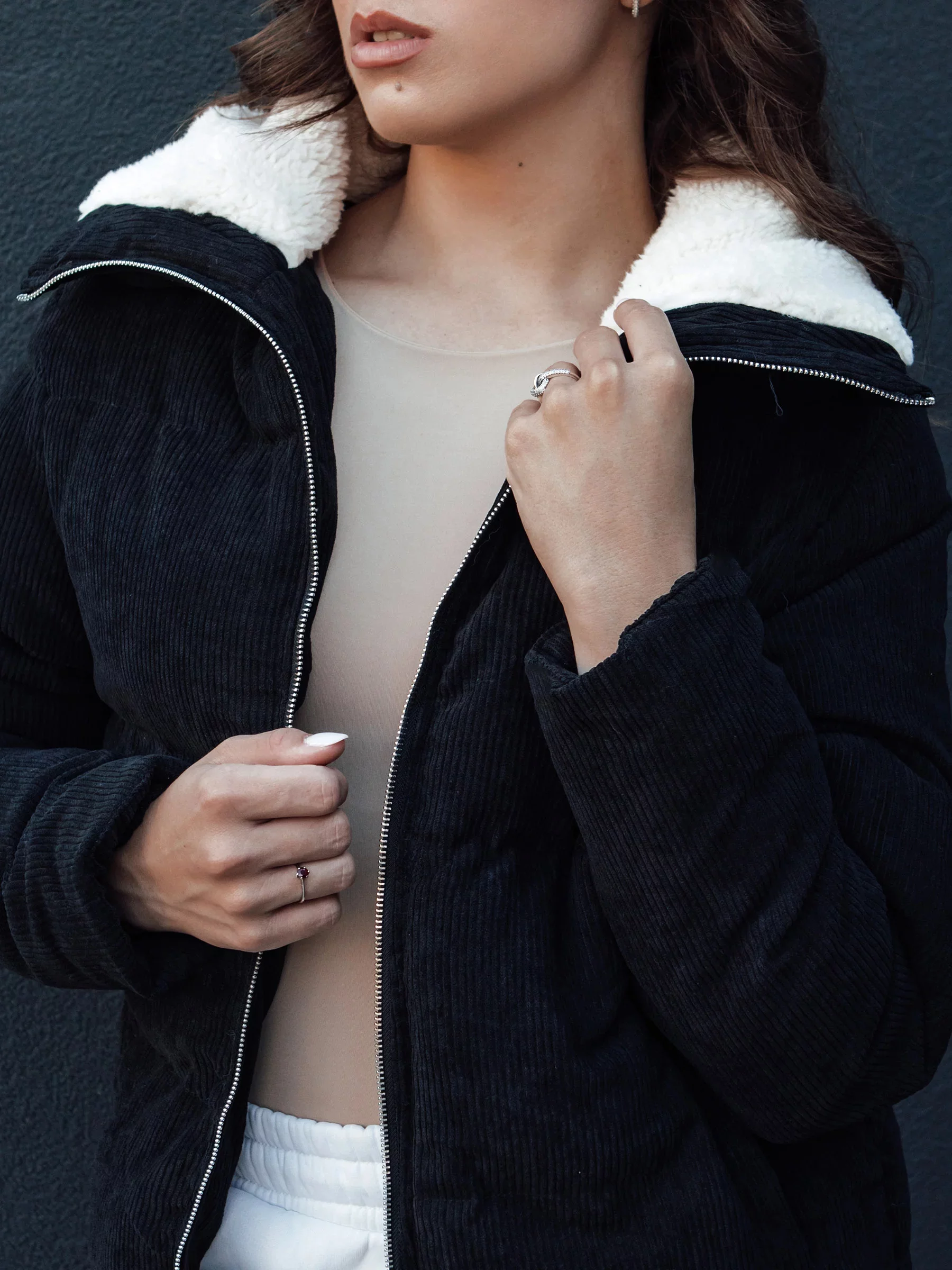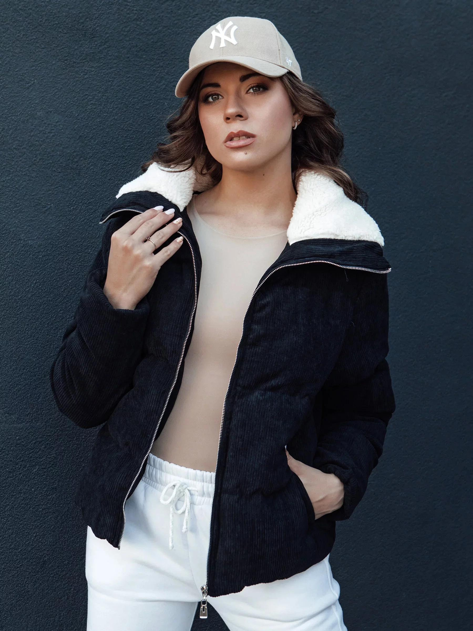 Vyrobená z vysoce kvalitního materiálu, poskytuje teplo a pohodlí, a měkký límec dodává eleganci. Ideální pro každodenní stylizace, spojuje módní vzhled s praktičností. Dvě kapsy na zip umožňují uchovávat nejdůležitější drobnosti. To must-have pro každou ženu, která si cení módy a pohodlí.