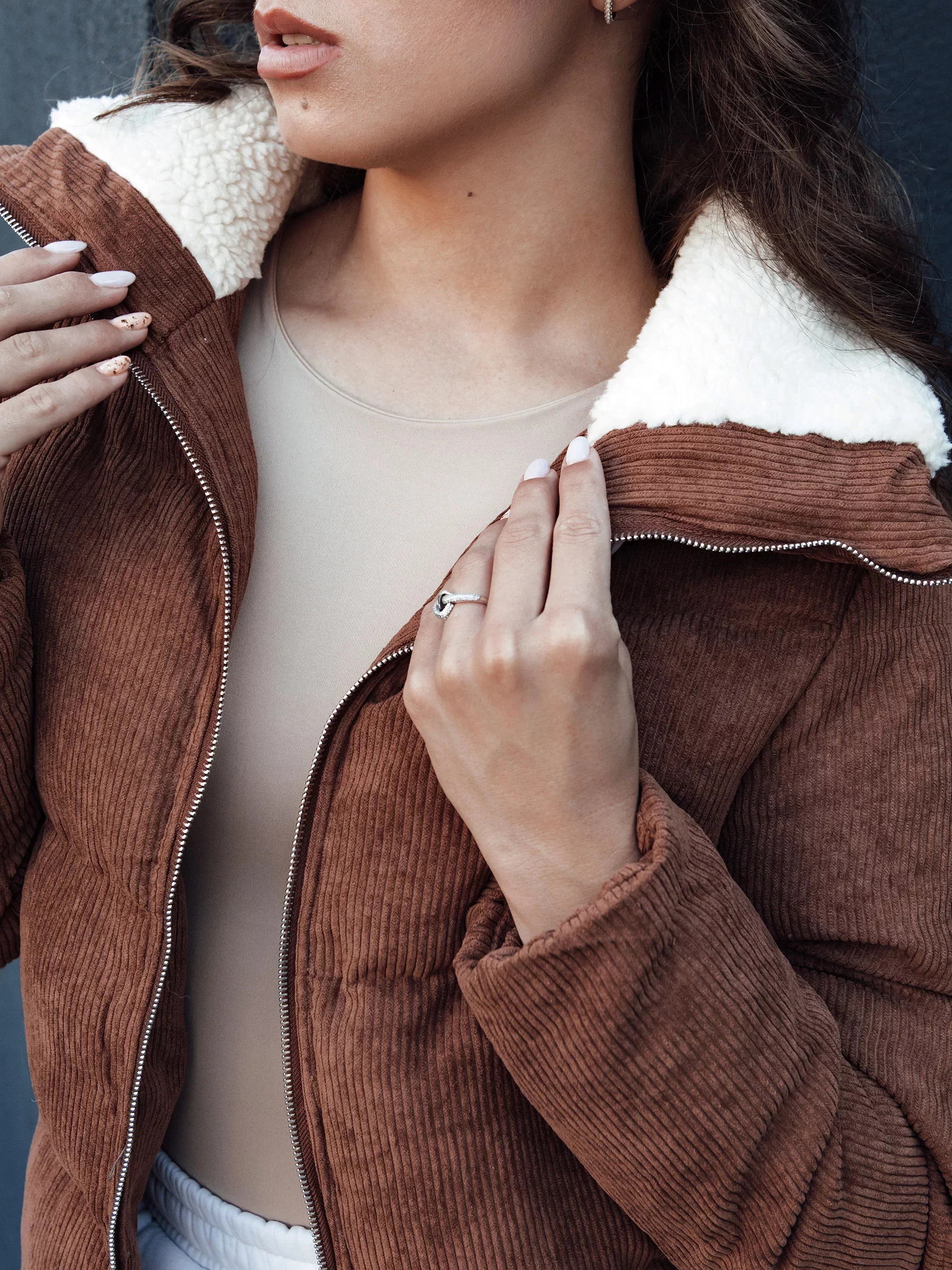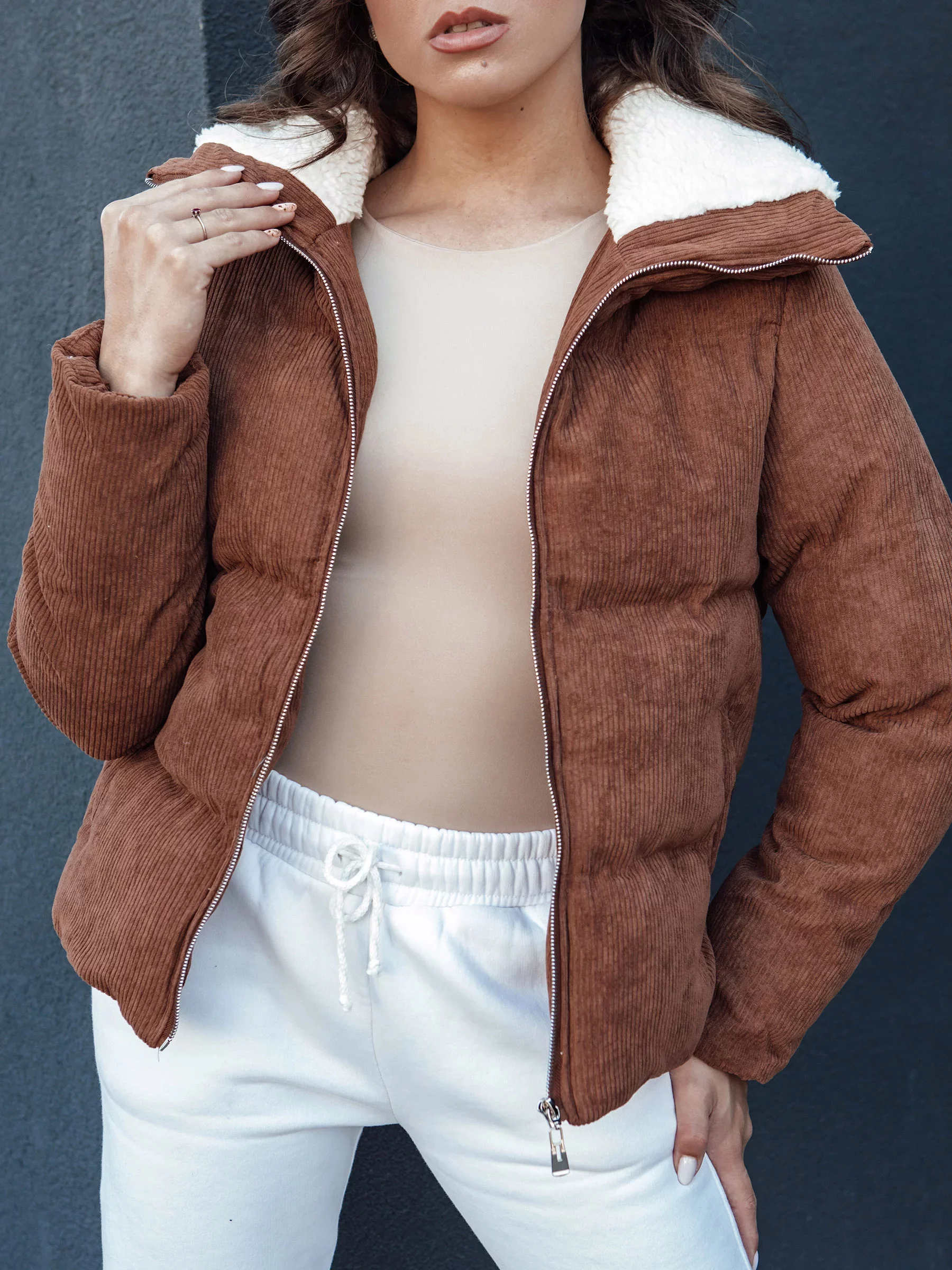 Vyrobená z vysoce kvalitního materiálu, poskytuje teplo a pohodlí, a měkký límec dodává eleganci. Ideální pro každodenní stylizace, spojuje módní vzhled s praktičností. Dvě kapsy na zip umožňují uchovávat nejdůležitější drobnosti. To must-have pro každou ženu, která si cení módy a pohodlí.
