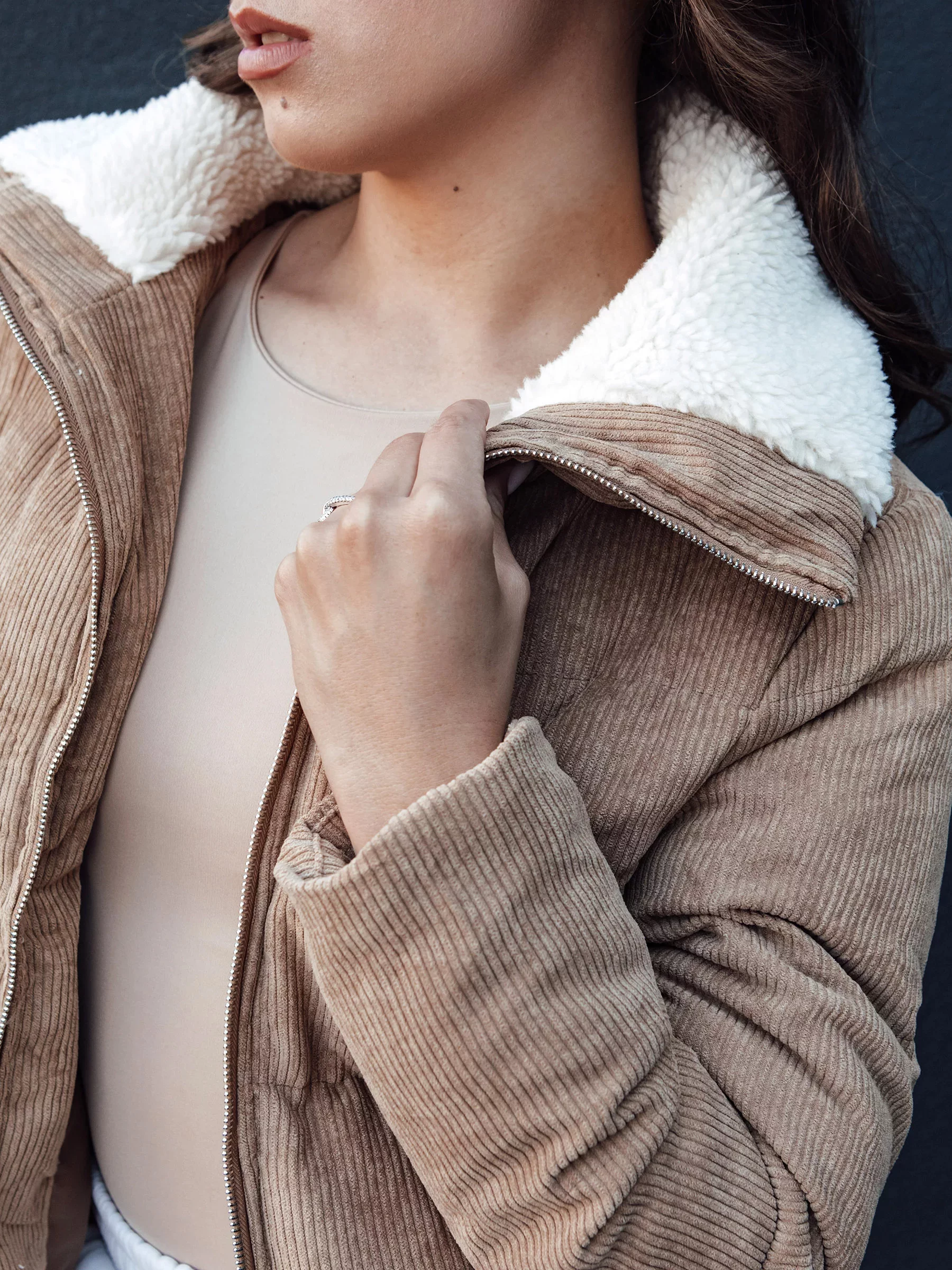 Vyrobená z vysoce kvalitního materiálu, poskytuje teplo a pohodlí, a měkký límec dodává eleganci. Ideální pro každodenní stylizace, spojuje módní vzhled s praktičností. Dvě kapsy na zip umožňují uchovávat nejdůležitější drobnosti. To must-have pro každou ženu, která si cení módy a pohodlí.