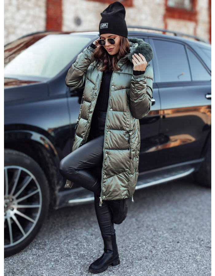 Dámská zimní bunda ULTRAWAY prošívaná s kapucí zelená Dstreet TY4754 Velikost: S