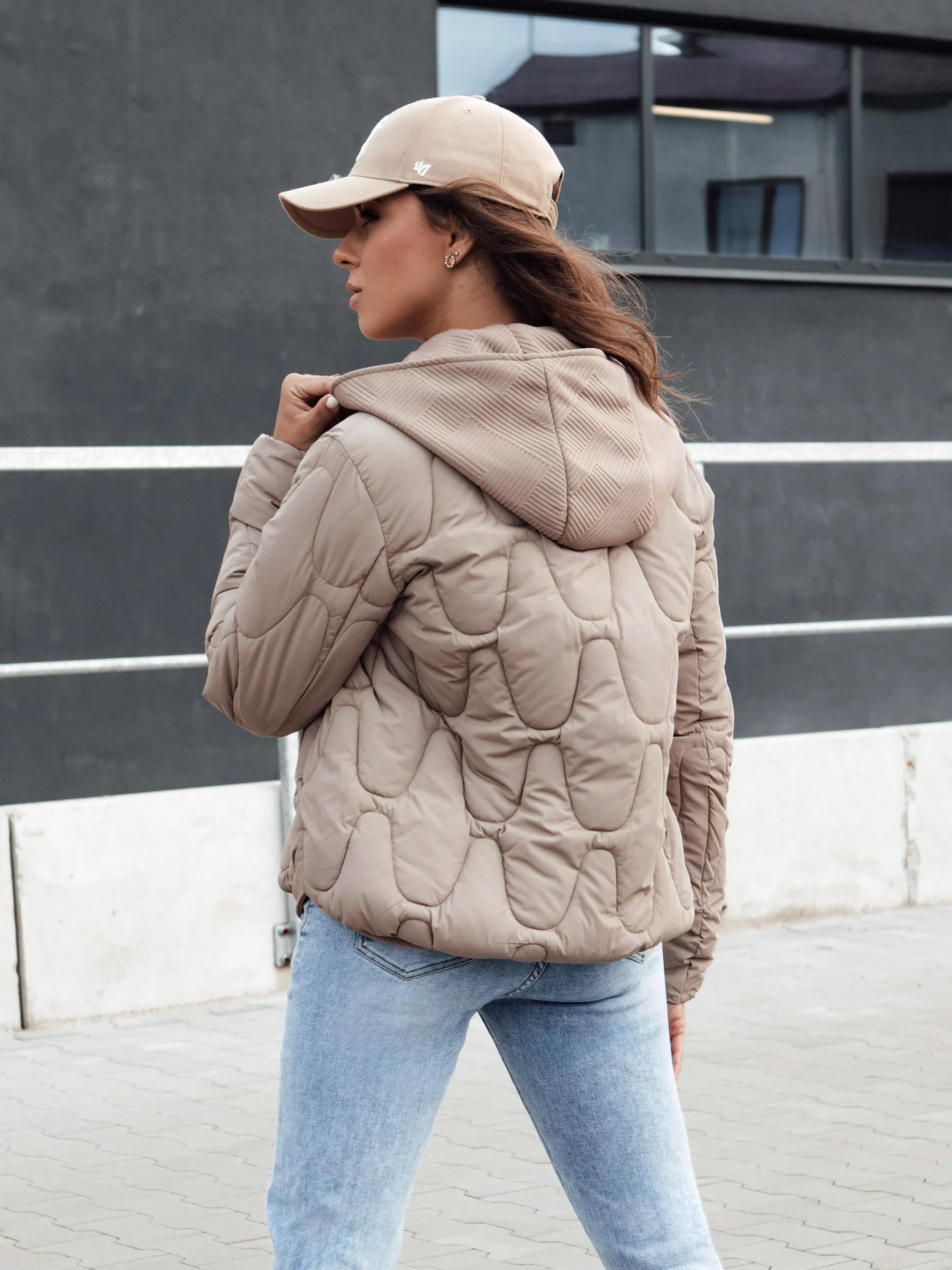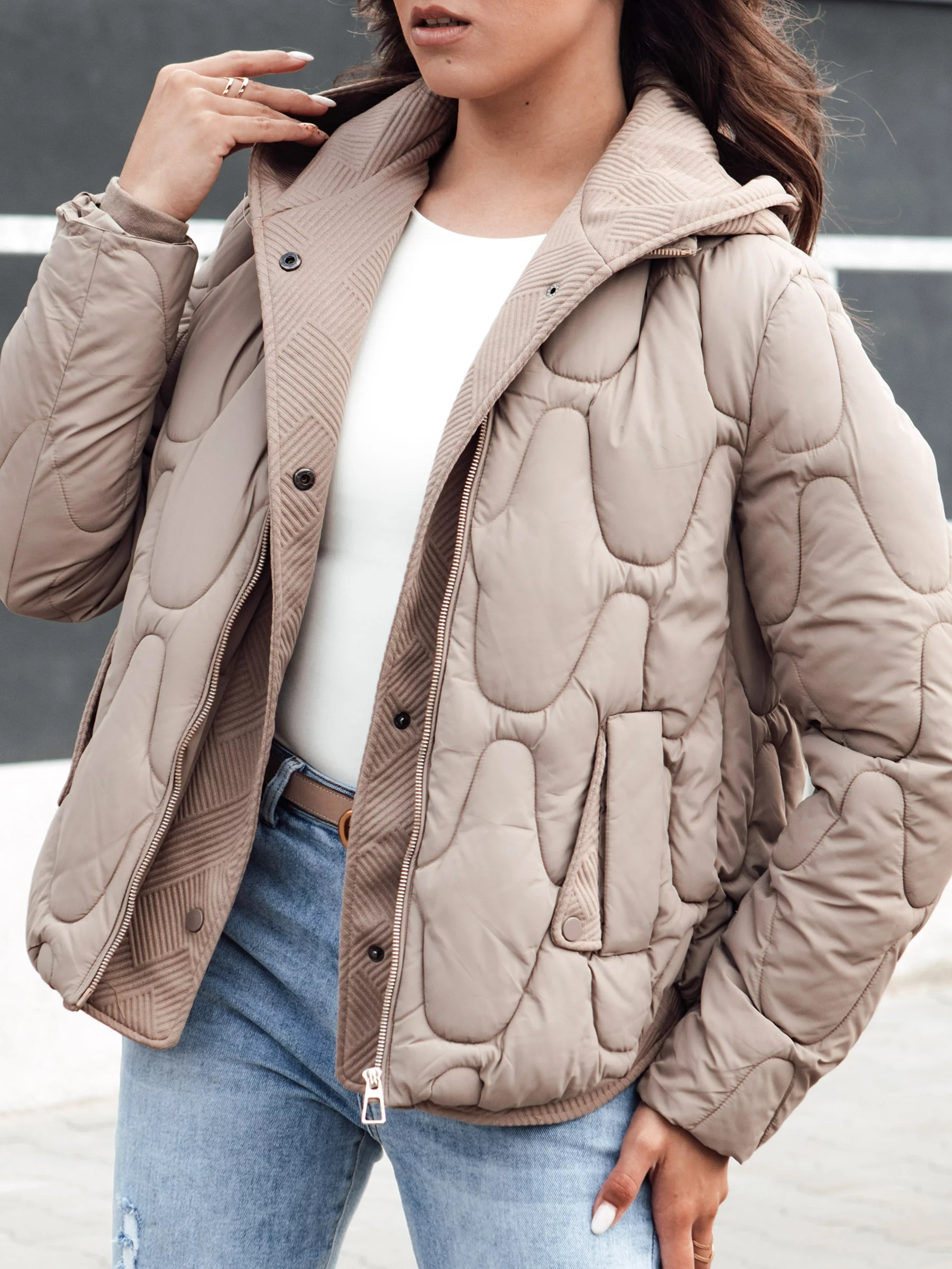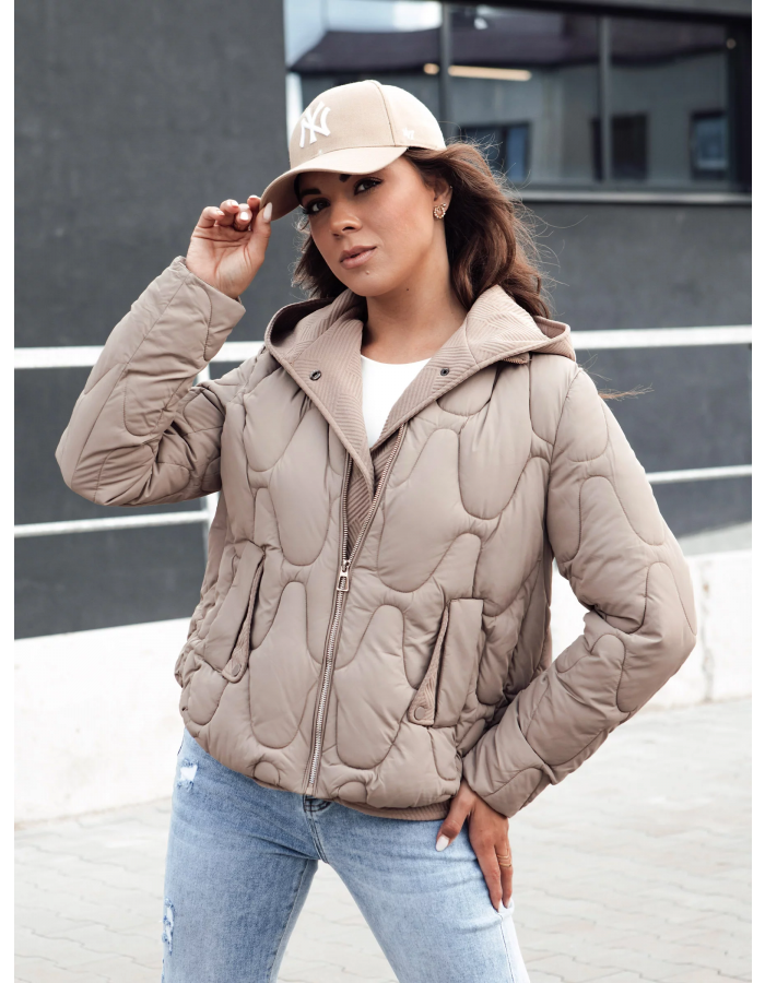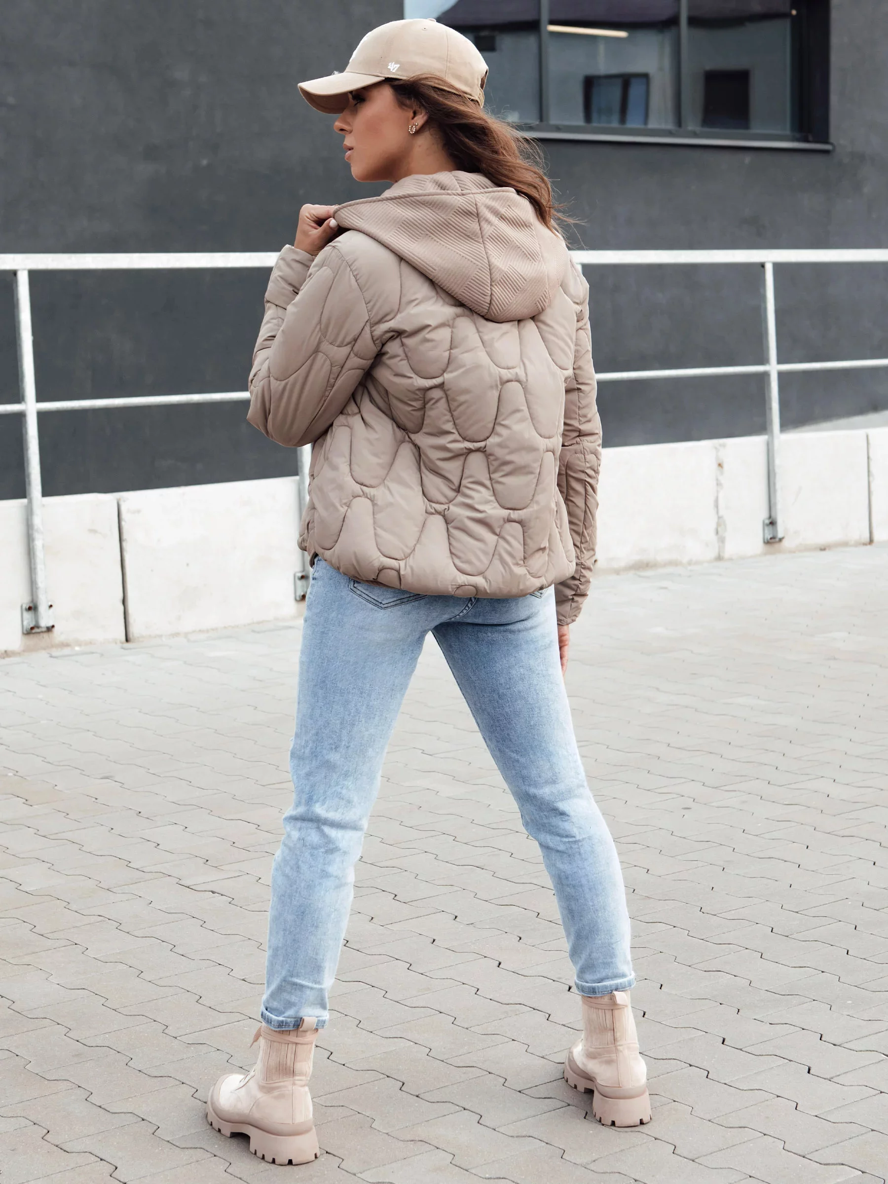 Dámská zimní prošívaná bunda s kapucí CRYSTAL tmavě béžová Dstreet TY4773