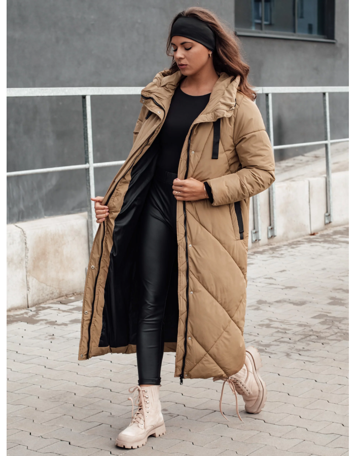 Dlouhá prošívaná bunda, která spojuje funkčnost s módním designem. To je ideální volba na zimní dny, poskytující optimální ochranu před chladem. Skvěle se hodí k městským stylizacím, dodává jim eleganci a lehkost. Komfortní kapsy a nastavitelná kapuce jsou praktické doplňky, které oceníte každý den.