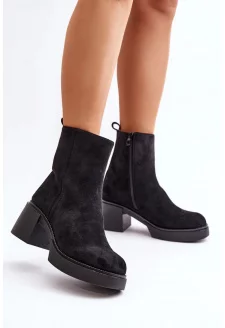 Zateplené Dámské Kotníkové Boty Na Podpatku Eko Semišové Černé Gudra