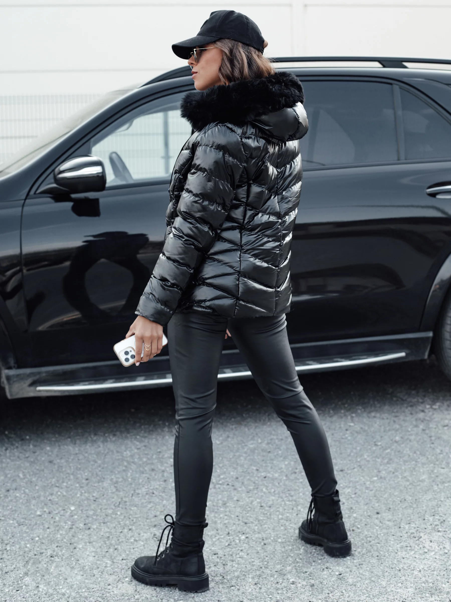 Prošívaná bunda s kapucí z lesklého materiálu, která vás odliší od davu.