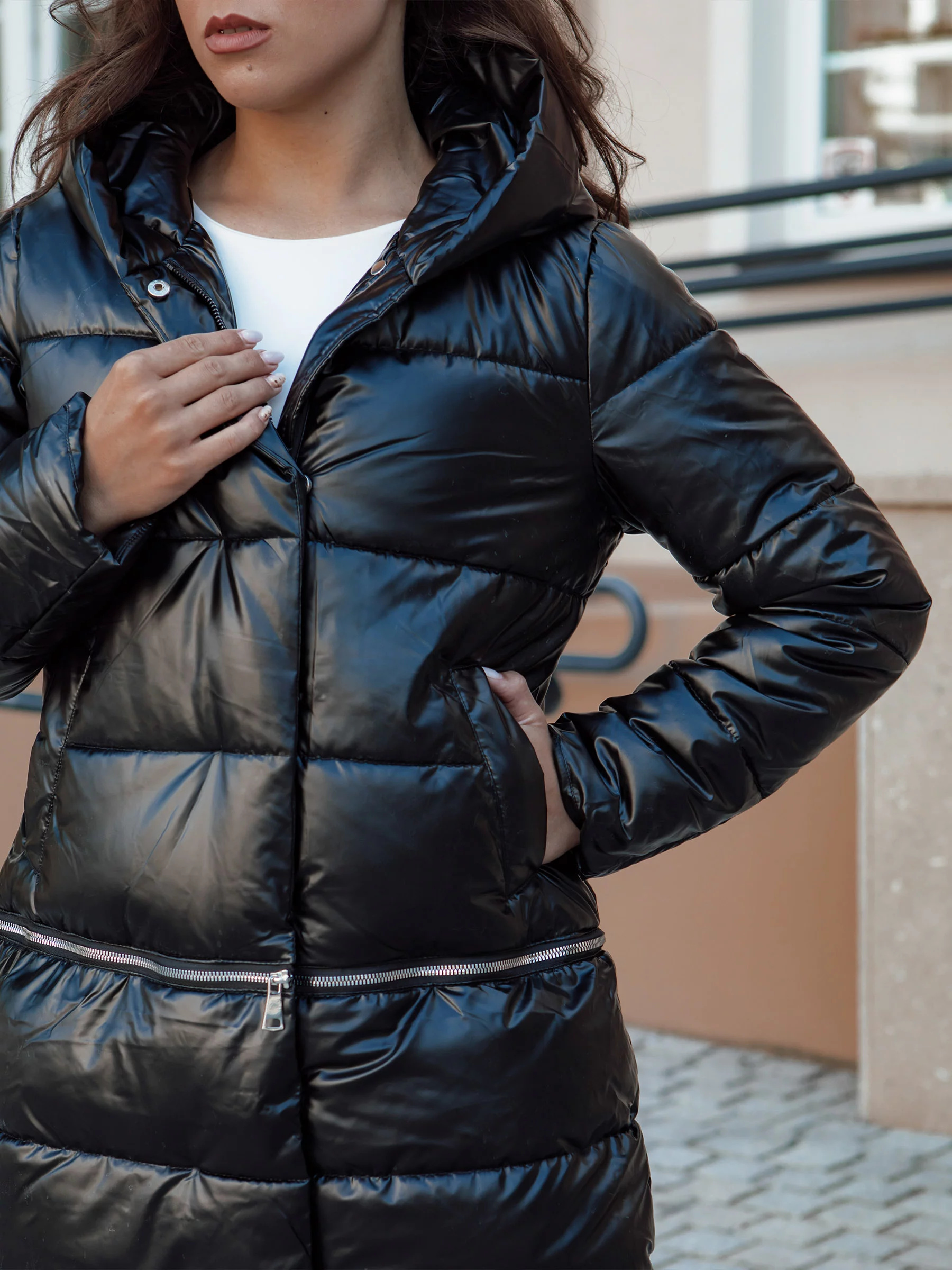 Stylová, dlouhá prošívaná bunda, navržená pro ženy, které si cení elegance a pohodlí. Lehká, ale velmi teplá, ideální na chladnější dny. Dokončení s lesklým efektem jí dodává jedinečné kouzlo. Praktická kapuce a hluboké kapsy zajišťují funkčnost a pohodlí. Ideální pro každodenní nošení, skvěle se hodí k různým stylům, od neformálních po formálnější. Dodej svému šatníku trochu moderního stylu s touto výjimečnou bundou.