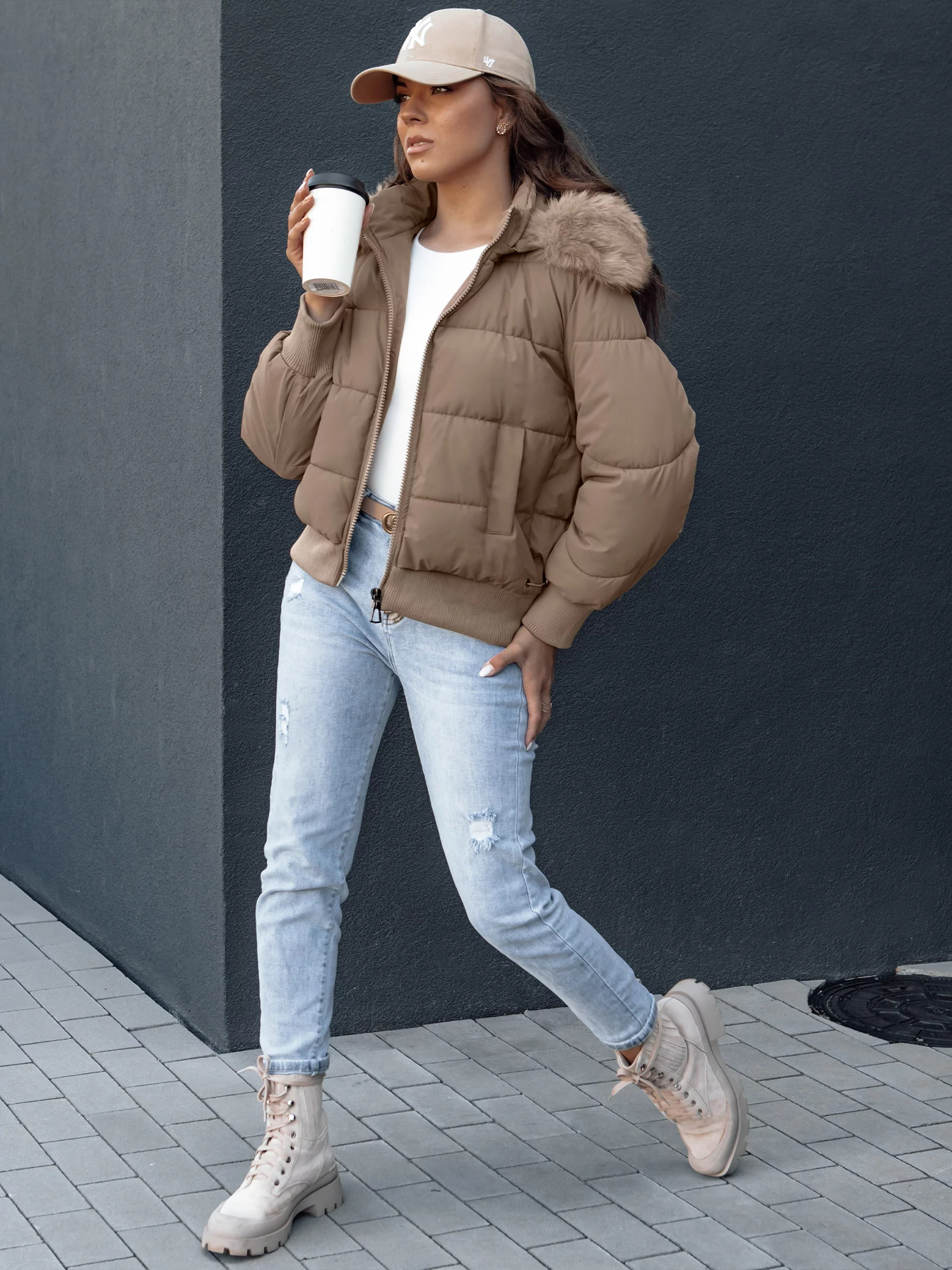 Módní bunda s odepínací kapucí, zapínaná na zip, je must-have v každé ženské šatní skříni. Vybavena dvěma vnějšími kapsami, umožňuje mít klíče nebo telefon na dosah ruky. Stahovací lemy na spodním okraji a rukávech dodávají půvab a chrání před zimou. Vyrobená z vysoce kvalitních materiálů, zaručuje pohodlí při nošení a trvanlivost. Ideální jak pro neformální, tak elegantní stylizace. Nečekej, investuj do svého stylu a pohodlí!