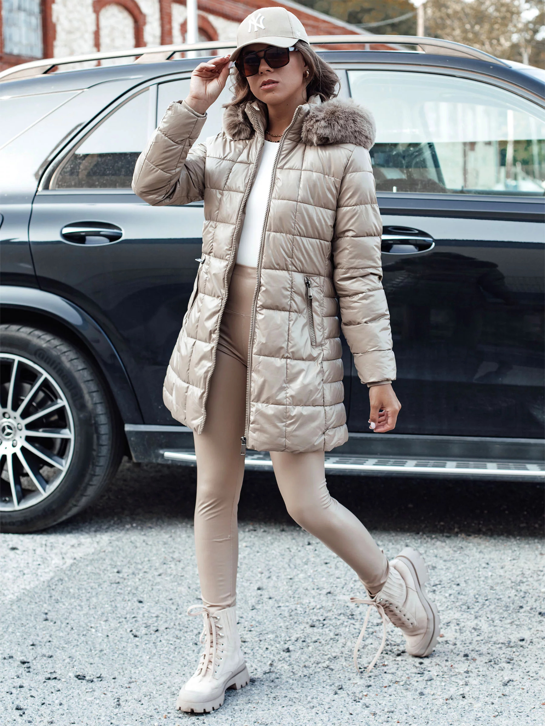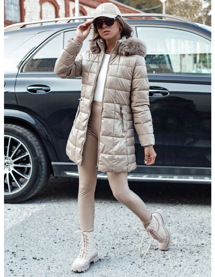 Dámská zimní prošívaná bunda WINTERZIP s kapucí světle béžová Dstreet TY4566 Velikost: L