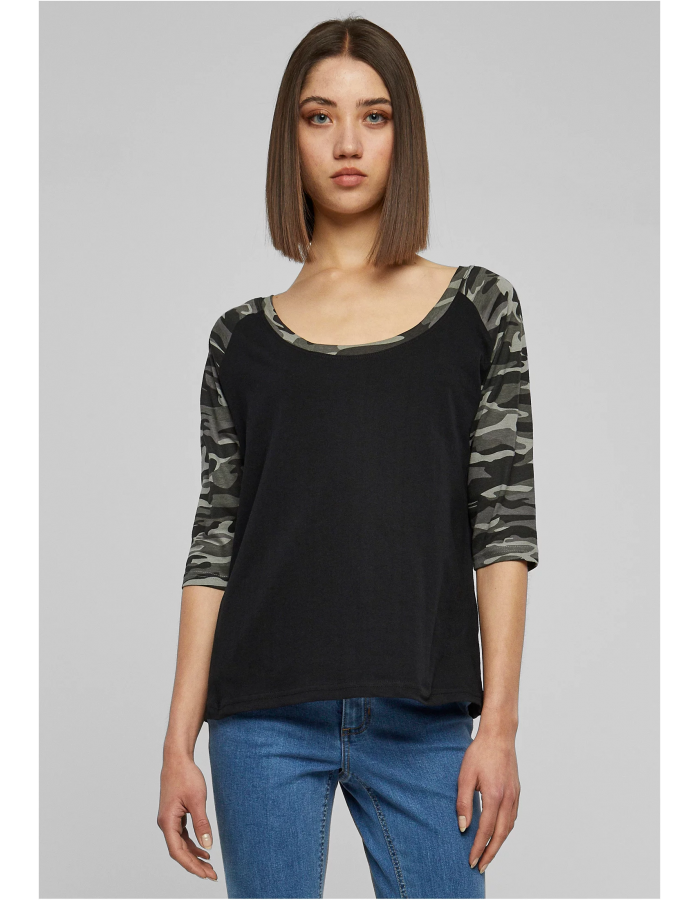Dámské 3/4 kontrastní raglánové tričko černé/tmavé camo