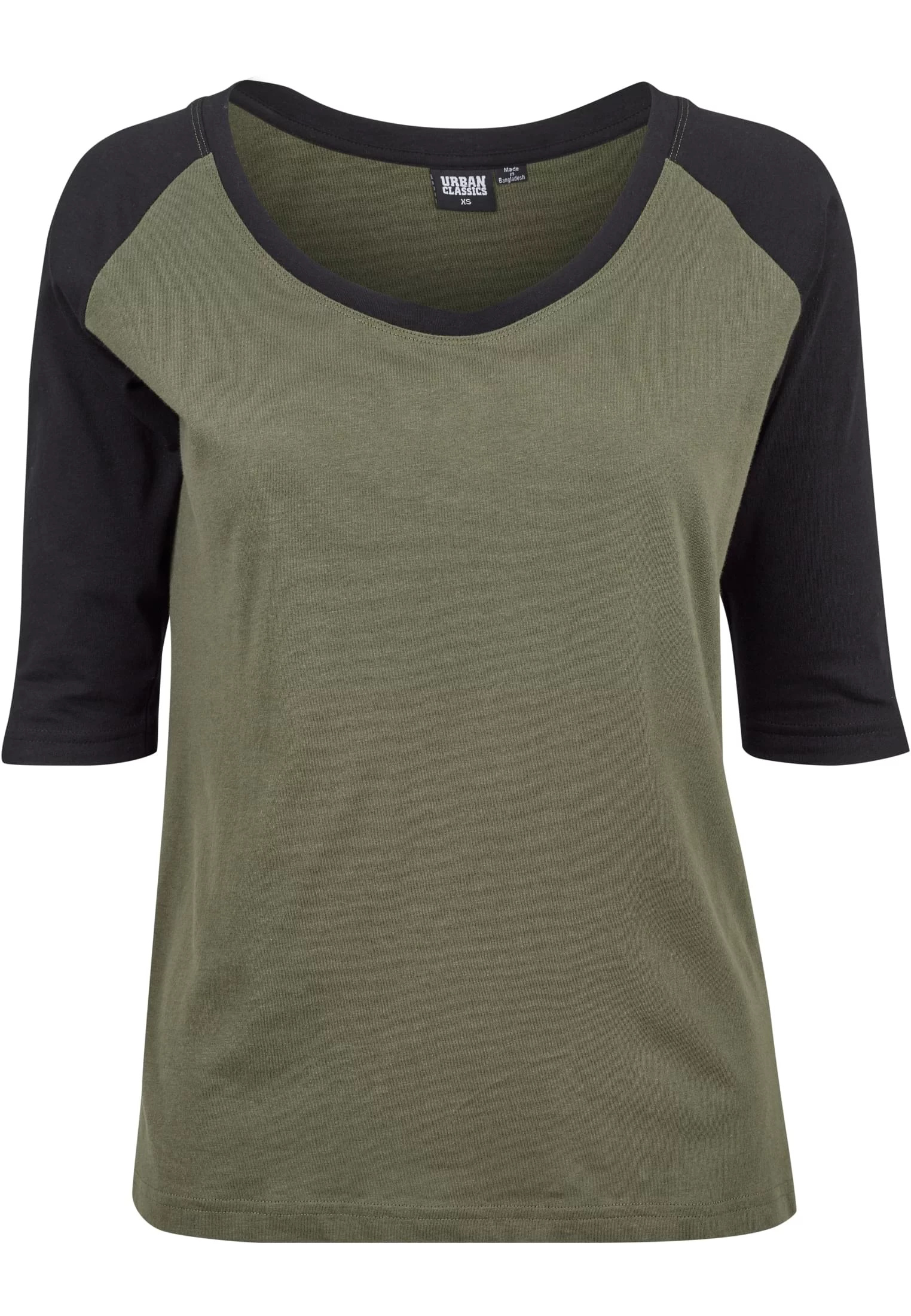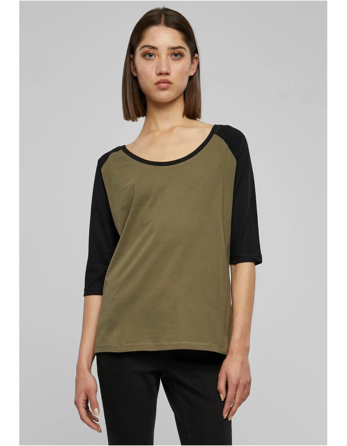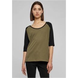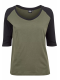 Dámské 3/4 kontrastní raglánové tričko olivově/černé