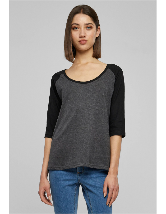 Dámské 3/4 kontrastní raglánové tričko uhlí/černé