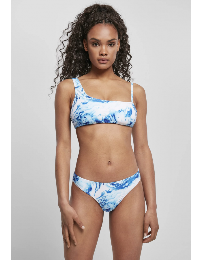 Zvláštností těchto moderních bikin je batikovaný vzhled v kombinaci s asymetricky střiženým topem a sexy brazilskými kalhotkami. Kromě toho nabízí odnímatelné vycpávky do bikin a odnímatelný popruh, který uspokojí všechny preference. Krásné bikiny jsou vyrobeny ze spolehlivého materiálu polyester a elastan.