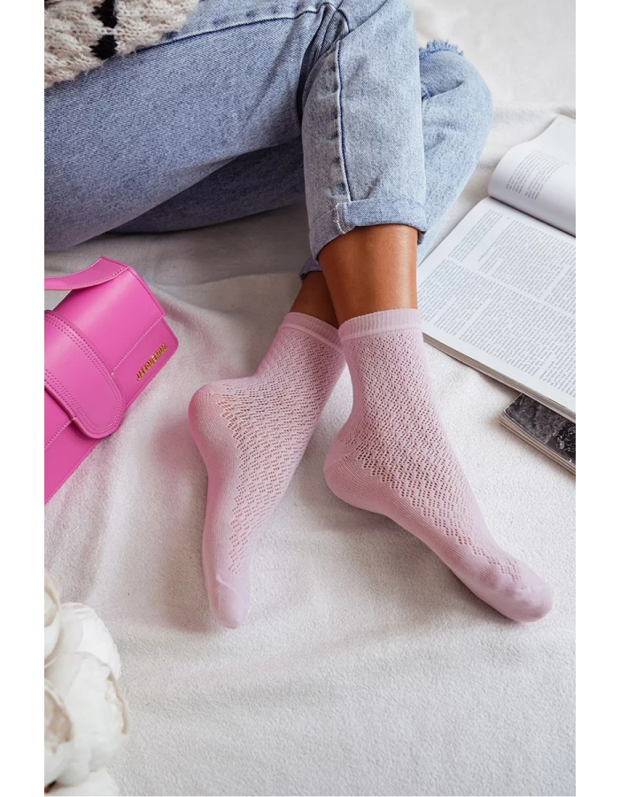 Růžové dámské azurové ponožky jsou měkké, pohodlné a ideální pro každodenní nošení. Lehký a prodyšný vzor dodává ponožkám elegantní vzhled a příjemný pocit na noze. Jemná růžová barva je nadčasová, něžná a snadno kombinovatelná s různou obuví a outfity.
