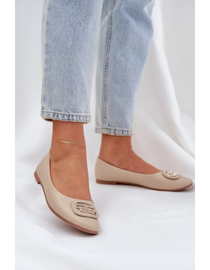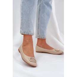 Béžové baleríny s ozdobou se skvěle hodí k šatům, sukním i kalhotám v přírodních a světlých tónech.