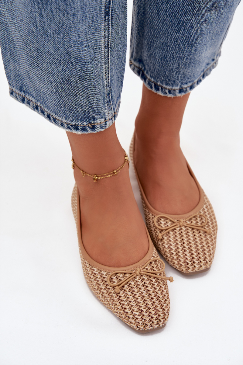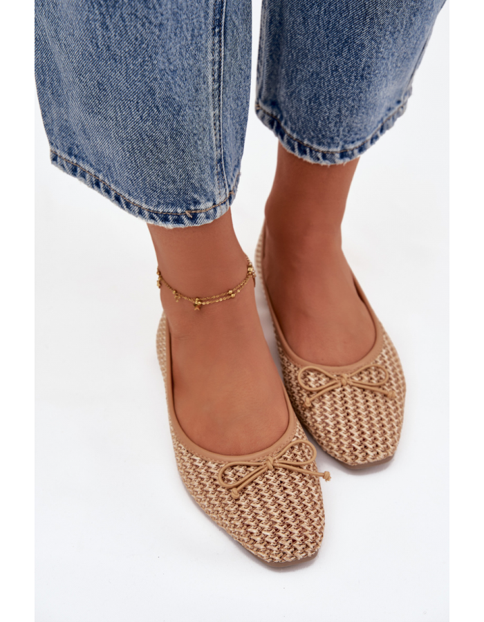 Camel baleríny Belirra doporučujeme kombinovat s neutrálními barvami oblečení, aby pletený detail a mašle vynikly jako elegantní akcent outfitu.