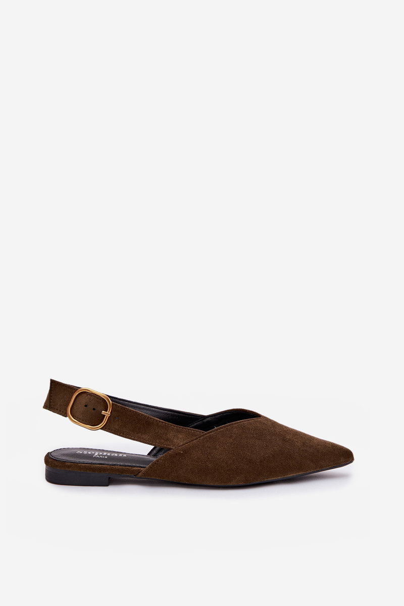 Olivové baleríny se zlatou přezkou krásně doplní outfit v béžových, krémových nebo hnědých tónech a podtrhnou přirozený styl.
