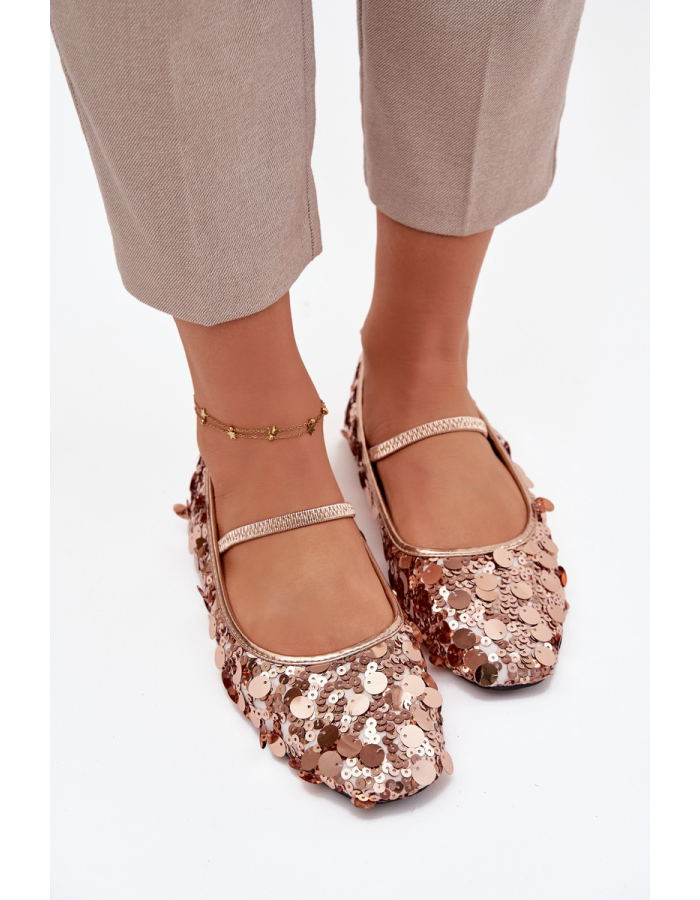 Elegantní baleríny Terlina v šampaňsko-růžovém odstínu zaujmou jemným třpytivým zdobením flitry, které dodává obuvi luxusní a ženský vzhled. Plochá podrážka a měkký materiál zajišťují pohodlí po celý den, zatímco decentní lesk krásně doladí slavnostní i každodenní outfit.