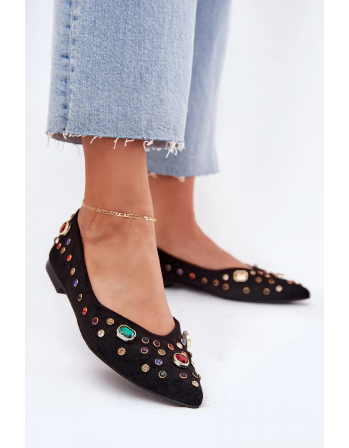 Elegantní černé baleríny Valena jsou doplněny jemnými krystalky, které dodávají obuvi luxusní a stylový vzhled. Plochá podrážka a měkký materiál zajišťují pohodlí po celý den, zatímco klasický střih umožňuje snadné kombinování s různými outfity. Ideální volba pro každodenní nošení i slavnostnější příležitosti.