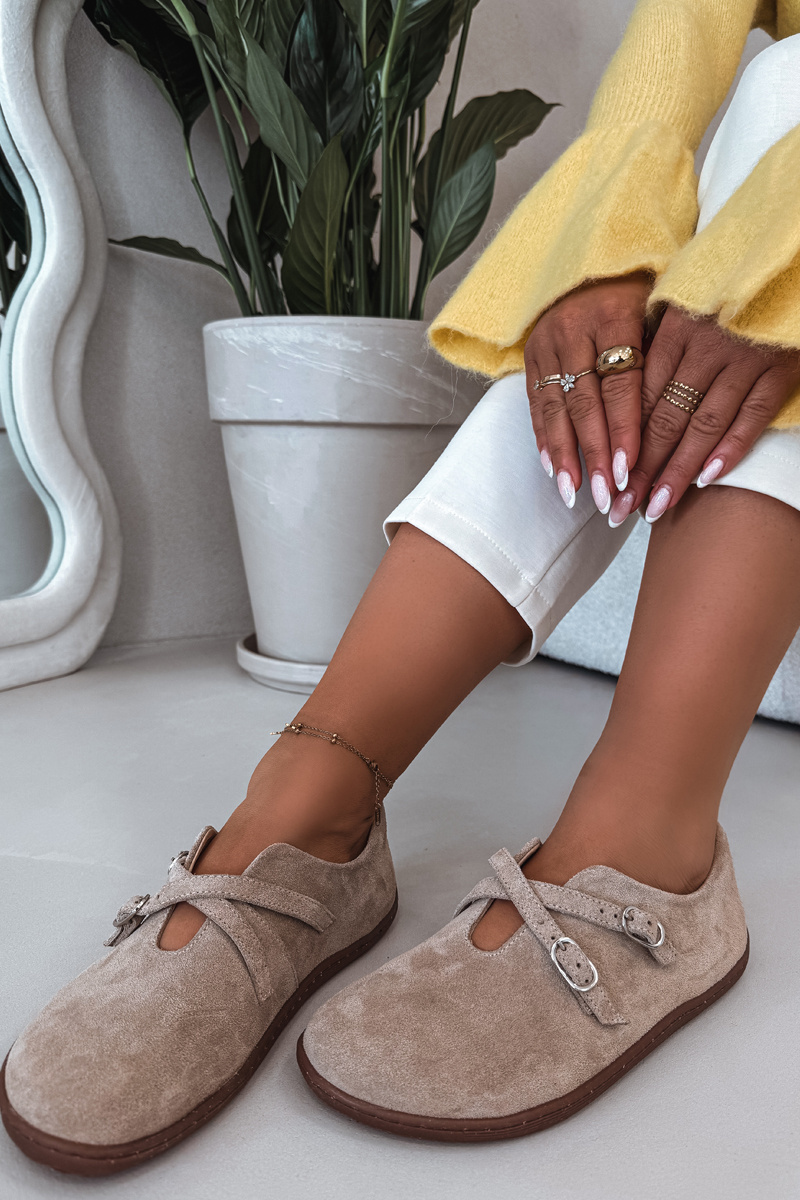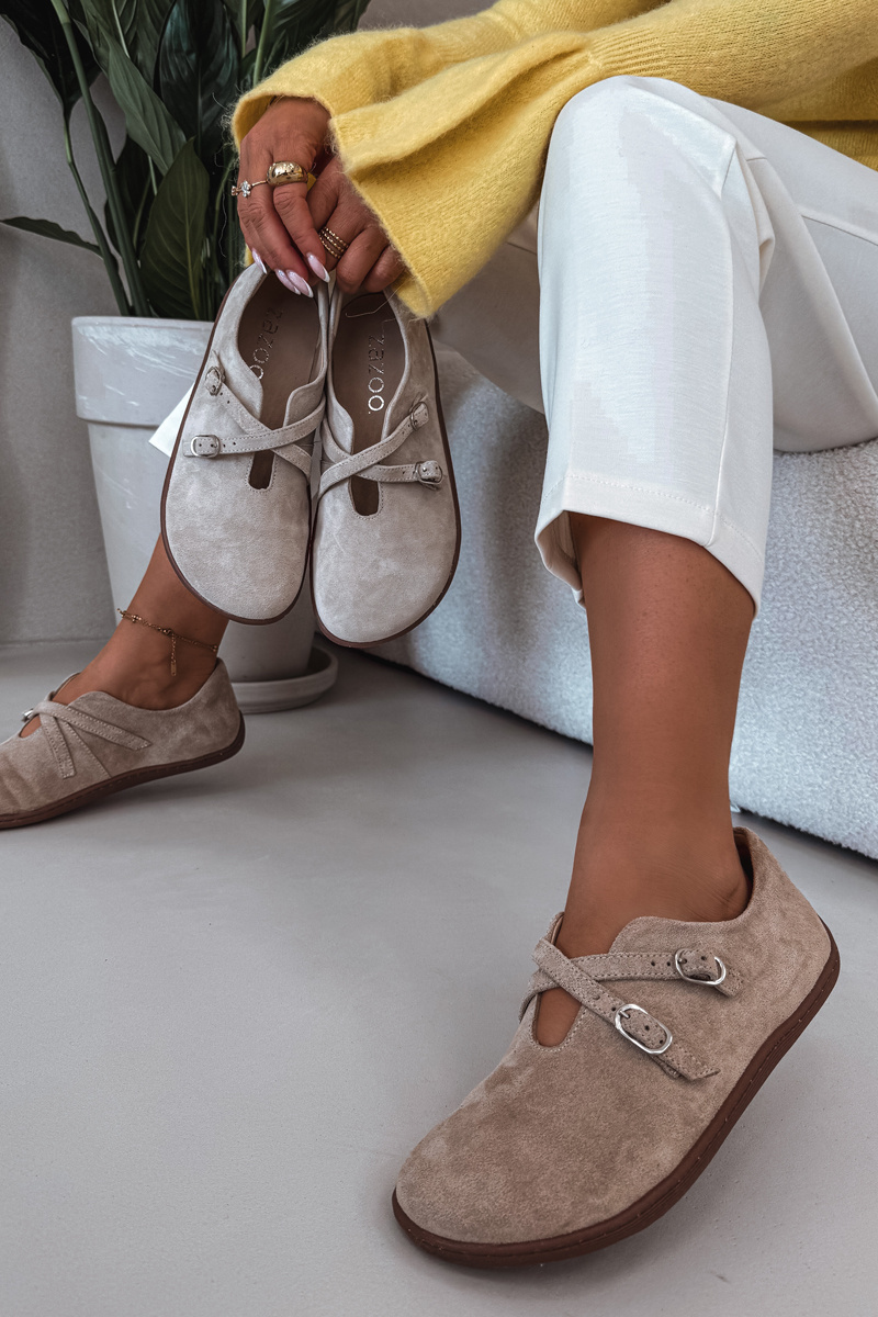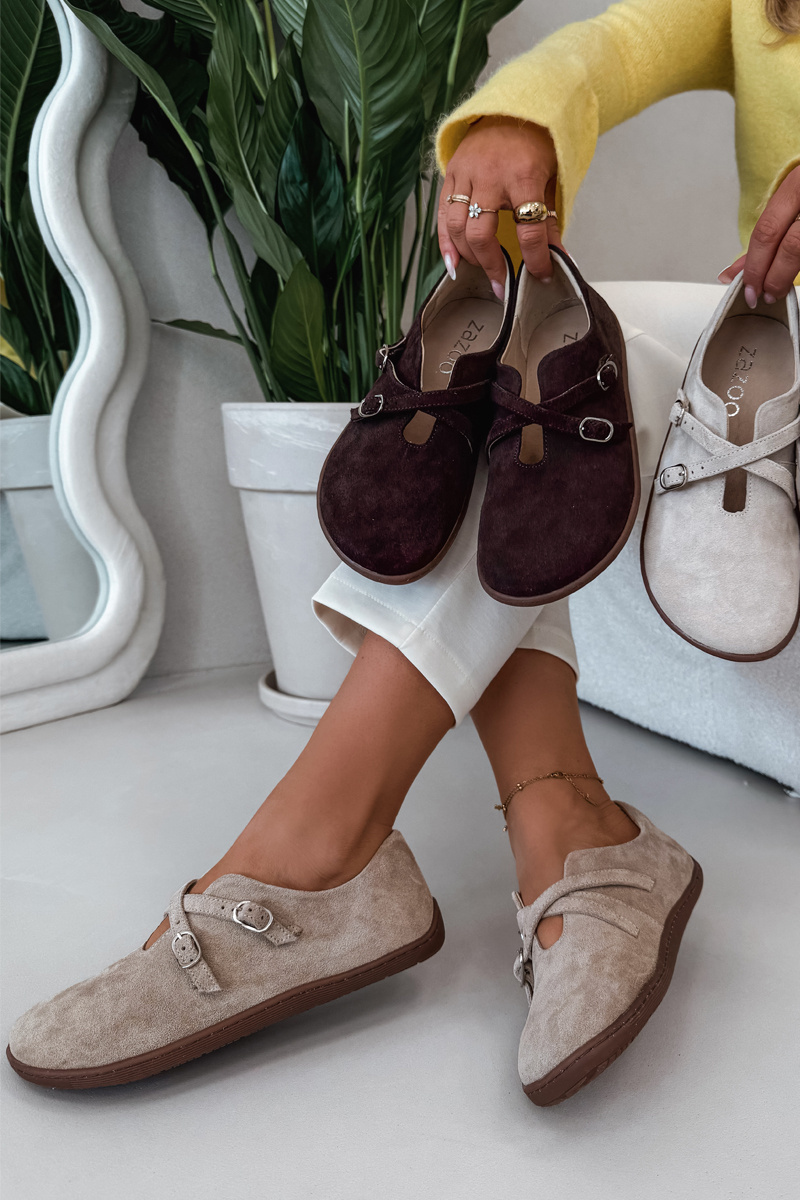 Dámské barefoot polobotky Zazoo v béžovém provedení jsou navrženy pro přirozený pohyb chodidla a maximální pohodlí při každodenním nošení. Svršek z kvalitní broušené kůže působí jemně a elegantně, zatímco pásky přes nárt zajišťují dobré přizpůsobení noze. Barefoot konstrukce podporuje zdravou chůzi a poskytuje dostatek prostoru pro prsty. Neutrální béžová barva se snadno kombinuje s městskými i volnočasovými outfity.