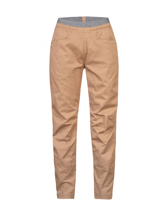 Dámské bavlněné kalhoty technického střihu s anatomicky tvarovanými koleny poskytují volnost pohybu a flexibilitu. Kalhoty jsou vyrobeny z kvalitní bavlny, která je prodyšná a příjemná na dotek, příměs elastanu dodává kalhotům poddajnost. Pas do gumy s regulací na šňůrku umožňuje individuální přizpůsobení a pohodlí během nošení. Kalhoty disponují 2 kapsami v přední i zadní části. Designovým prvkem jsou printované vnitřní kapsy. Díky svému univerzálnímu designu jsou kalhoty určené nejen pod skálu a do přírody, ale i pro každodenní nošení.