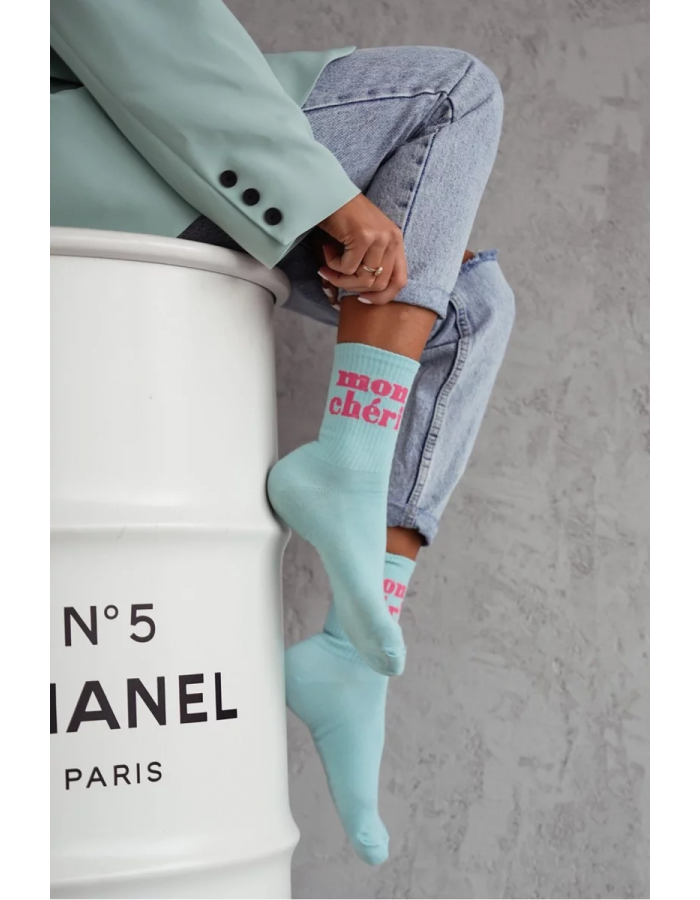 Dámské bavlněné ponožky Mon Chéri v modré barvě jsou pohodlným doplňkem pro každodenní nošení. Příjemný bavlněný úplet dobře sedí na noze a nápis Mon Chéri dodá outfitu jemně hravý, moderní detail. Modrý odstín se snadno kombinuje s džínovinou i neutrálními barvami, takže ponožky využijete do tenisek i městské obuvi.