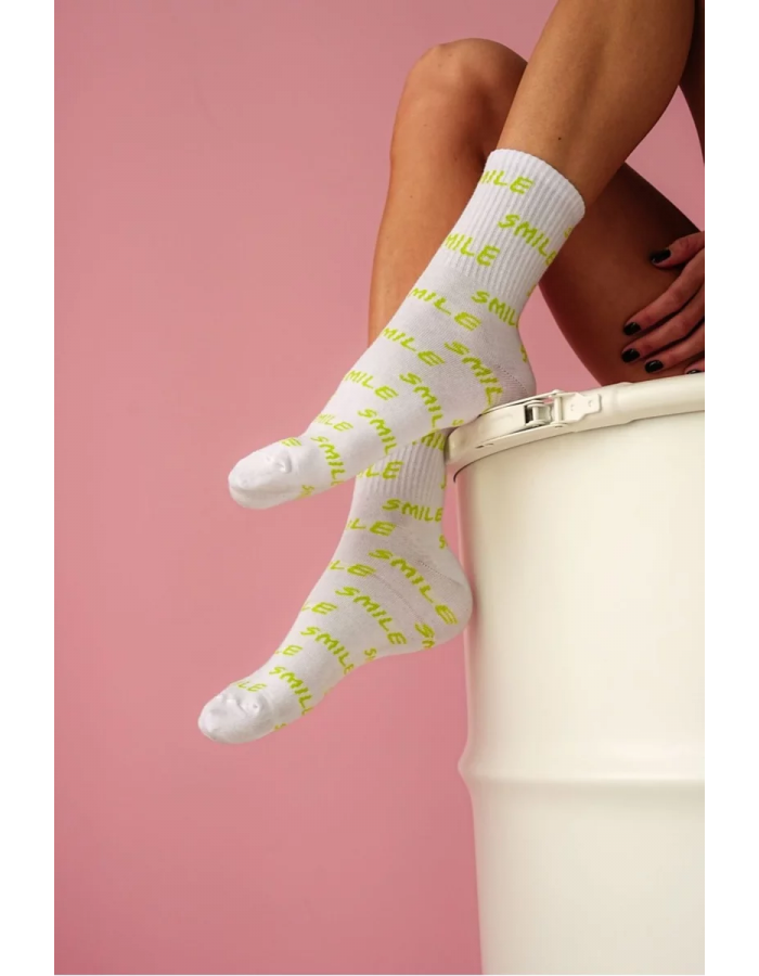 Dámské Bavlněné Ponožky S Nápisem Smile Bílé