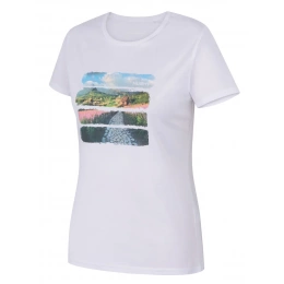 Dámské bavlněné triko Tee Flo L se stylovým potiskem a krátkým rukávem v jednoduchém designu a klasickém střihu je elegantním a zároveň nadčasovým kouskem. Nabízí prvotřídní komfort a funkčnost pro každou moderní ženu. Triko si obleč na sport a všechny outdoorové aktivity, kdy je pro tebe důležité pohodlí a příjemný materiál.