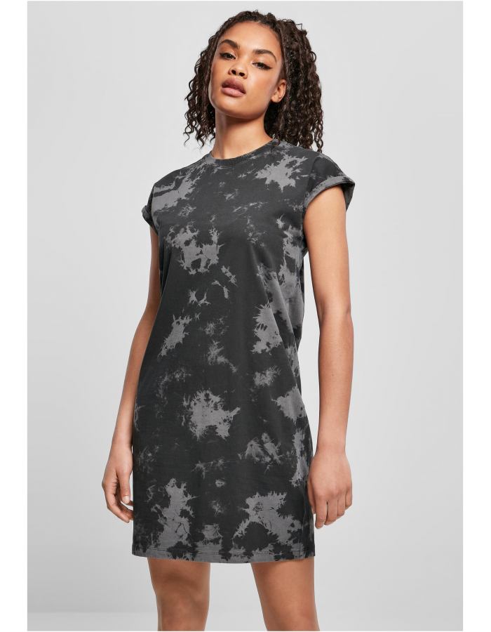 Všechno, jen ne obyčejné letní šaty pro sebevědomé a charismatické ženy. Použitý efekt částečného bělení vytváří individuální struktury a akcenty, které upoutají pozornost. Dámské šaty jsou volného střihu. Rukávy jsou zkosené, dovedně tak zdůrazňují horní část paží a ramena.