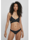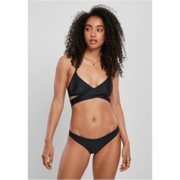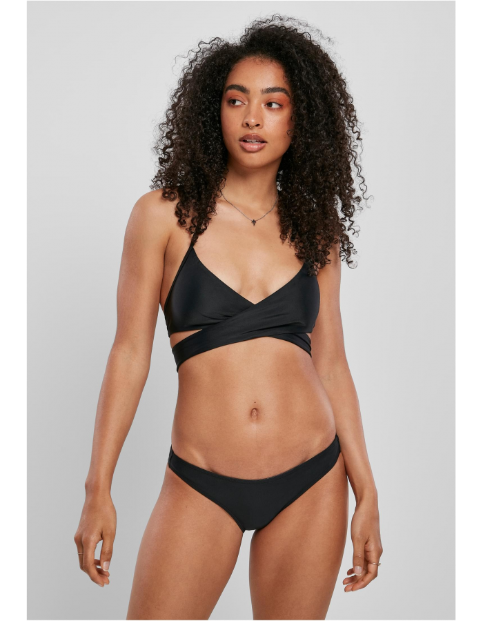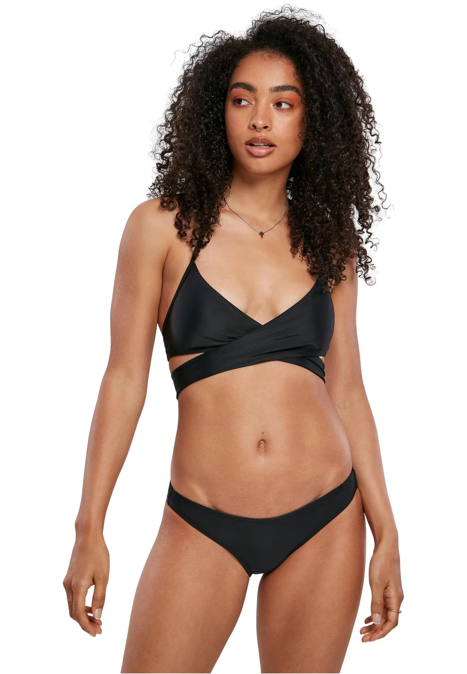 S těmito okouzlujícími dámskými bikinami od URBAN CLASSICS ve světlém nařaseném a obaleném předním díle upřete všechny oči na vás. Ať už je to v Surfer's Paradise nebo na příští plážové párty s těmi nejžhavějšími beaty – ramínka vzadu zkřížená a pevně stažená k sobě – top s nákrčníkem zdůrazní vaše tělo. Push-up efekt zaručuje vzrušující siluetu. Tenké bikiny kalhoty dodávají sportovní vzhled.